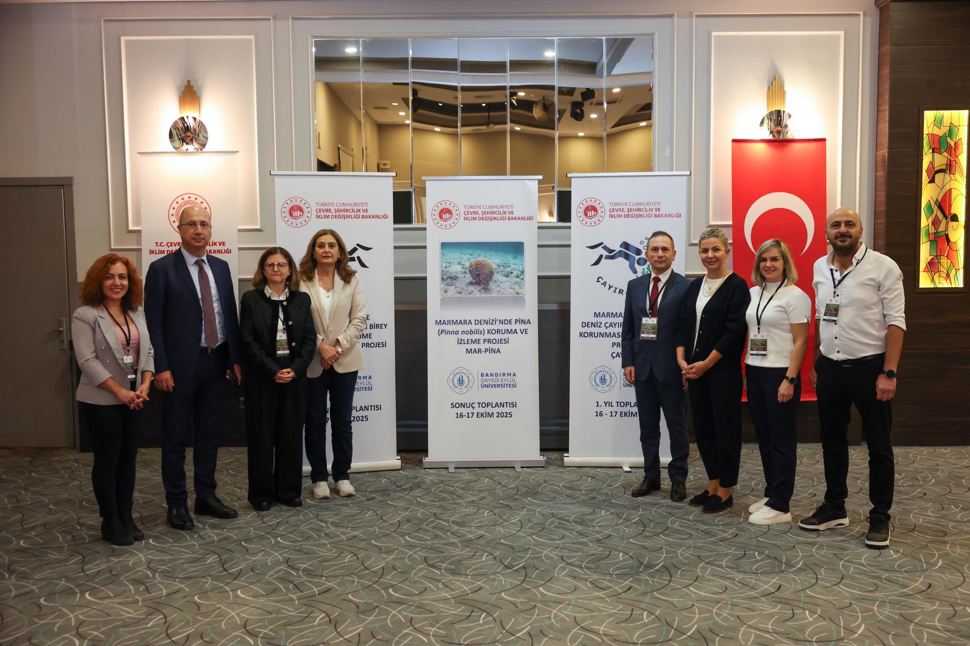 The MAR-PİNA Project, jointly carried out by Bandırma Onyedi Eylül University and the General Directorate for the Protection of Natural Assets of the Ministry of Environment, Urbanization, and Climate Change, has been successfully completed. Within the same framework, the first year of the PİNA-İZ and ÇAYIR-İZ projects has also been concluded. A year-end evaluation meeting for these projects was held at Bandırma Grand Asya Hotel.