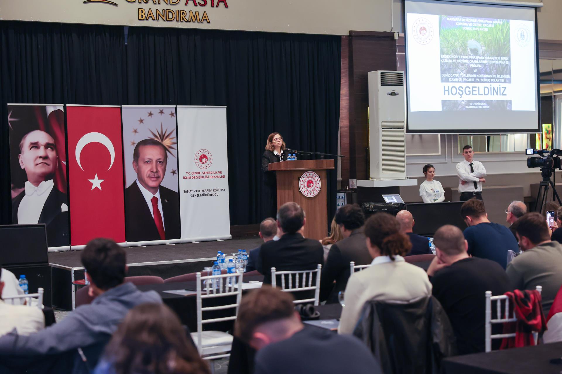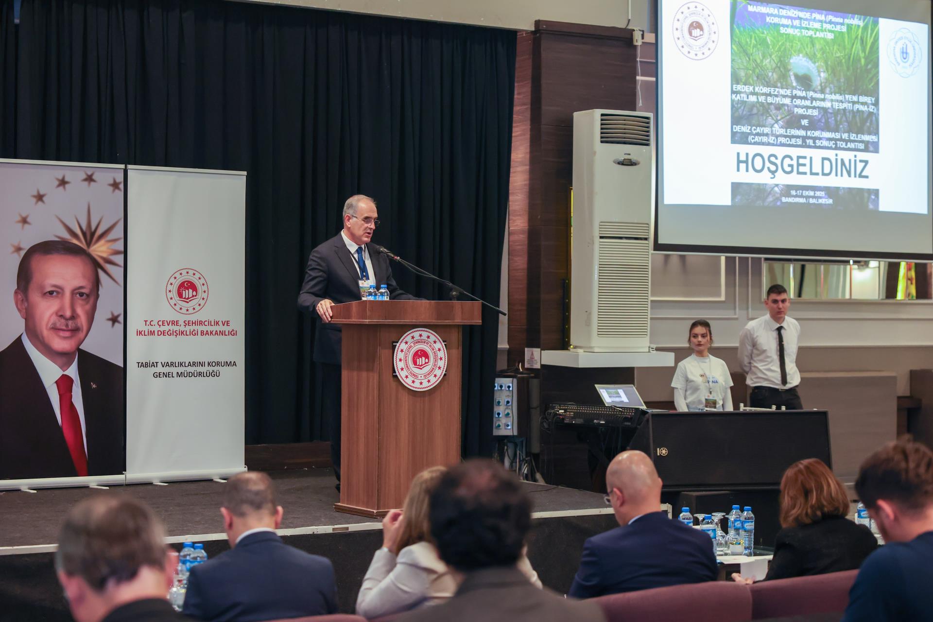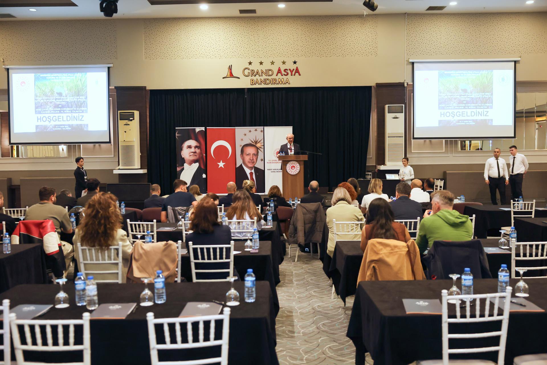 Following the moment of silence and the Turkish National Anthem, opening speeches were delivered by Rector Prof. Dr. İsmail Boz, Project Coordinator Prof. Dr. Mustafa Sarı, and Deputy Director General Dr. Beyhan Oktar. The speeches highlighted the significance of the projects in improving the Marmara Sea ecosystem and protecting both seagrass habitats and the endangered pen shell (Pinna nobilis) populations.