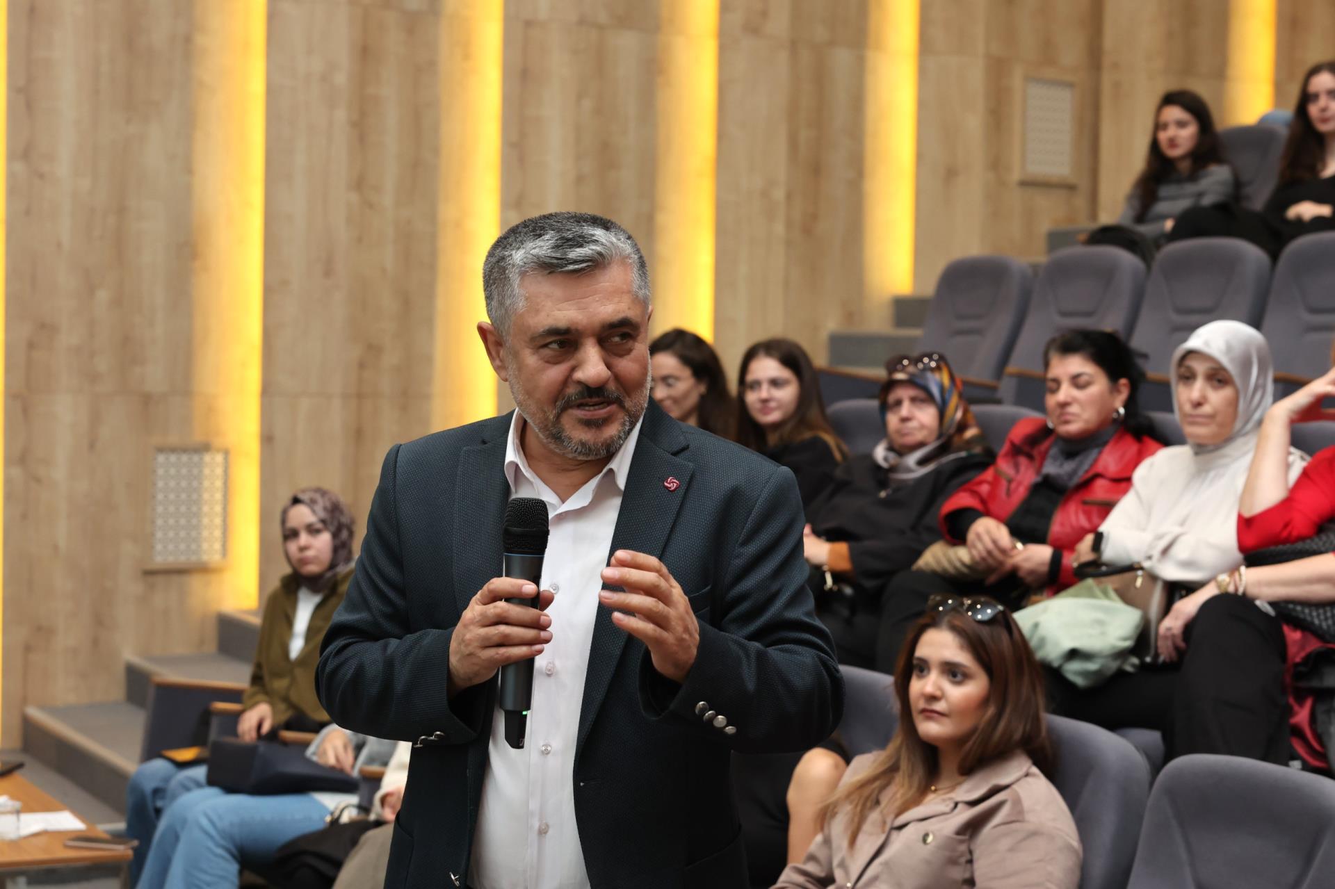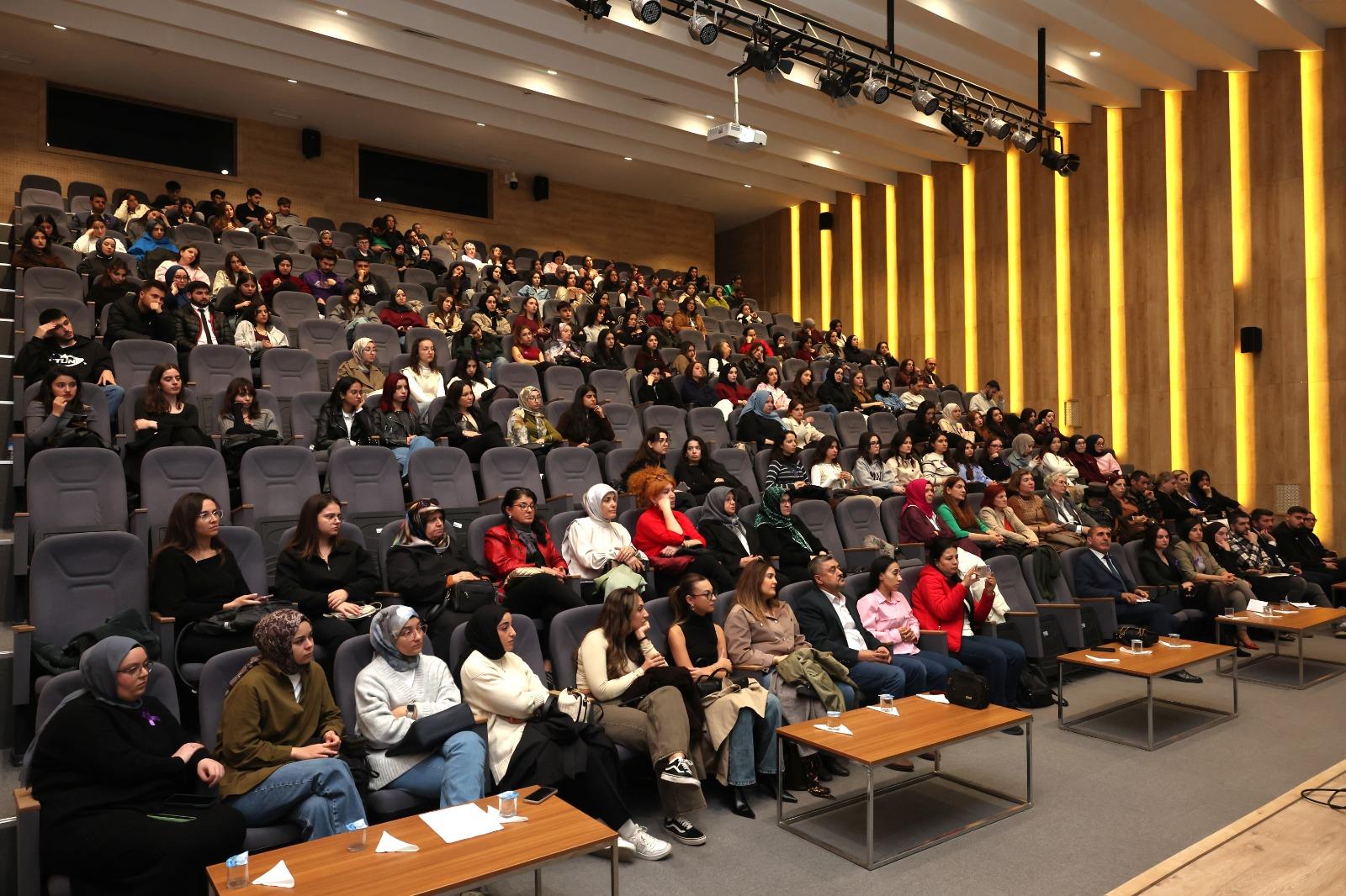 A panel titled “Social Awareness Against Violence Towards Women” was organized within the scope of the International Day for the Elimination of Violence Against Women on 25 November, in collaboration with our Women, Family and Community Services Research and Application Center (BANÜ-KAT) and the Social Work Student Community. The event, held at the Prof. Dr. Aziz Sancar Conference Hall, commenced with a moment of silence and the singing of the National Anthem. The program was attended by Sibel Boz, the spouse of our Rector Prof. Dr. İsmail Boz; Dean of the Faculty of Economics and Administrative Sciences Prof. Dr. Serap Palaz Çakır; our faculty members; representatives of women’s associations; members of the press; and our students.
