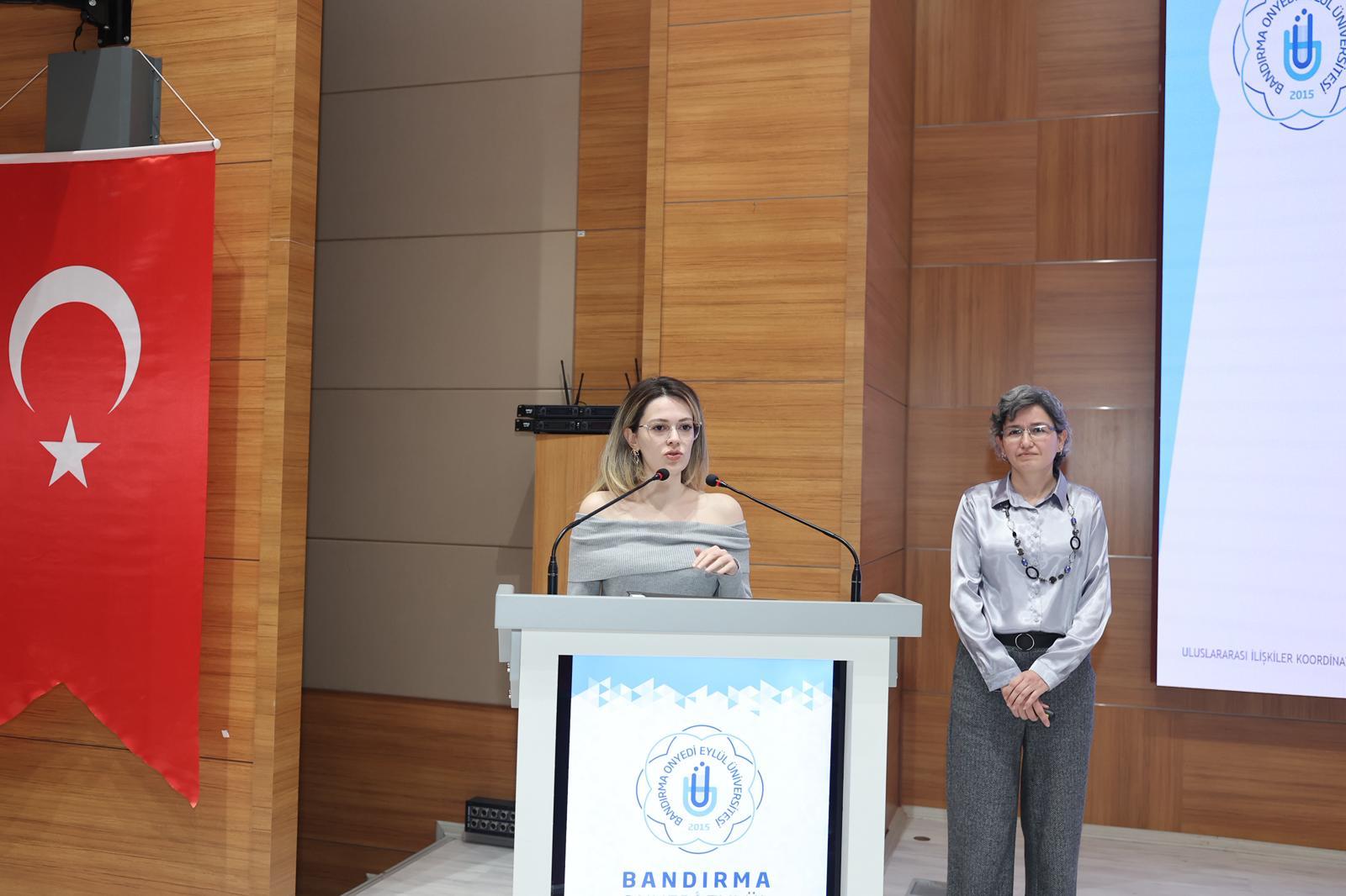 Ayrıca toplantıda, önceki dönemlerde Erasmus hareketliliğine katılan öğrencimiz deneyimlerini paylaşarak aday öğrencilerle etkileşim sağladı.