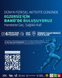 Üniversitemiz Bilim İletişimi Ofisi ile Fizik Tedavi ve Rehabilitasyon Uygulama ve Araştırma Merkezi iş birliğiyle, “Dünya Fiziksel Aktivite Günü’nde Egzersiz İçin BANÜ’de Buluşuyoruz” başlıklı etkinlik düzenlenecektir.