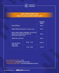 Yüzmeden tenise, jimnastikten okçuluğa bir çok spor faaliyetinin gerçekleştirilebildiği tesislerimizde uygulanacak olan yeni tarifenin hayırlı olmasını diliyor, spor ve sporcu dostu üniversite olarak tüm öğrencilerimizi, personelimizi ve halkımızı tesislerimizin imkanlarından yararlanmaya davet ediyoruz.