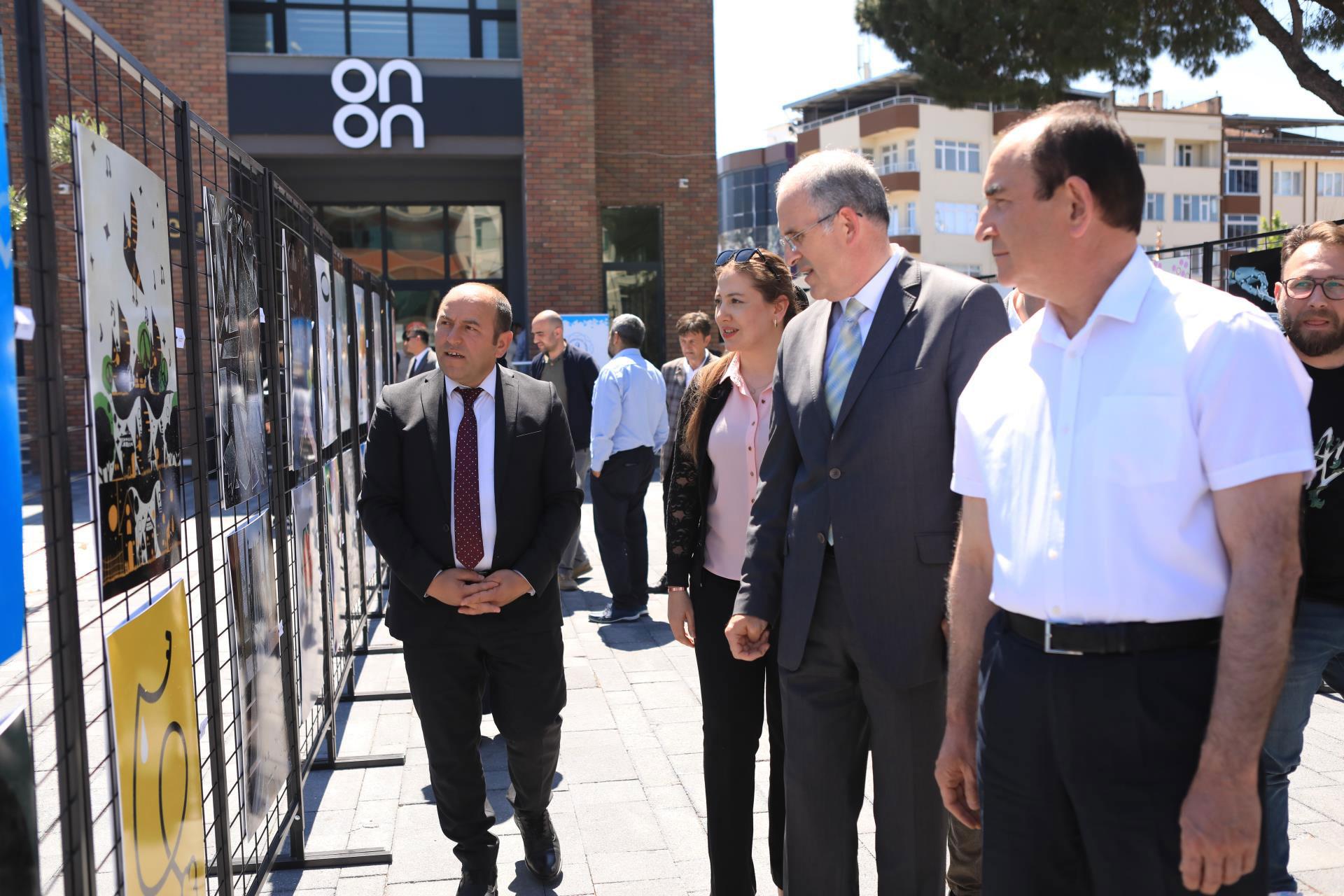 Açılış töreninde Rektör Prof. Dr. İsmail Boz ve Kaymakam Ahmet Altıntaş, sergilenen eserleri tek tek gezerek organizatörlerle görüş alışverişinde bulundu, eserlerin temaları ve teknikleri hakkında bilgi aldı.