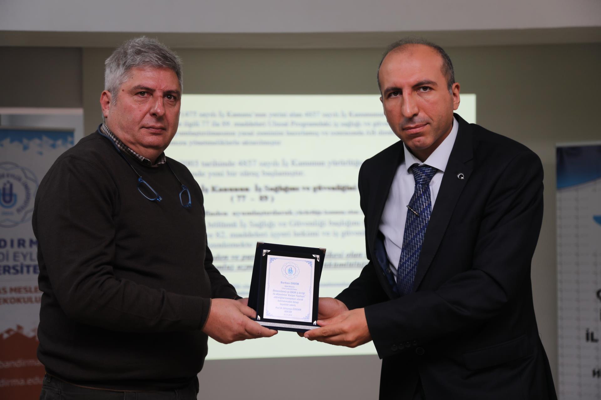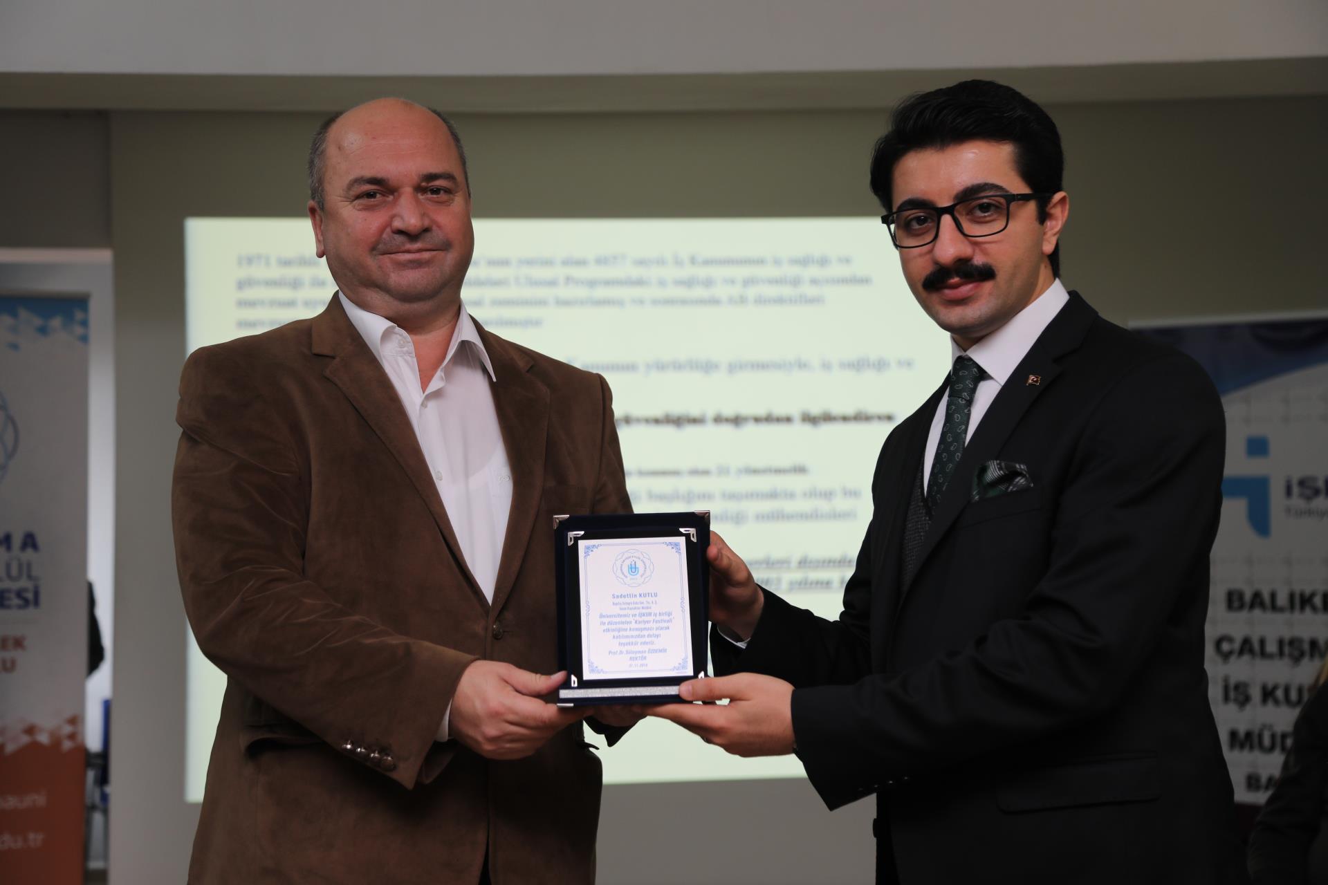 “Kariyer Festivali”nin öğleden önceki oturumu Rektörümüz Prof. Dr. Süleyman Özdemir’in, Manyas Kaymakamı Muhammed Kaya’nın ve Bandırma Çalışma ve İş Kurumu Müdürü Emrullah Narin’in konuşmacılara plaket takdiminde bulunmasıyla sona erdi.