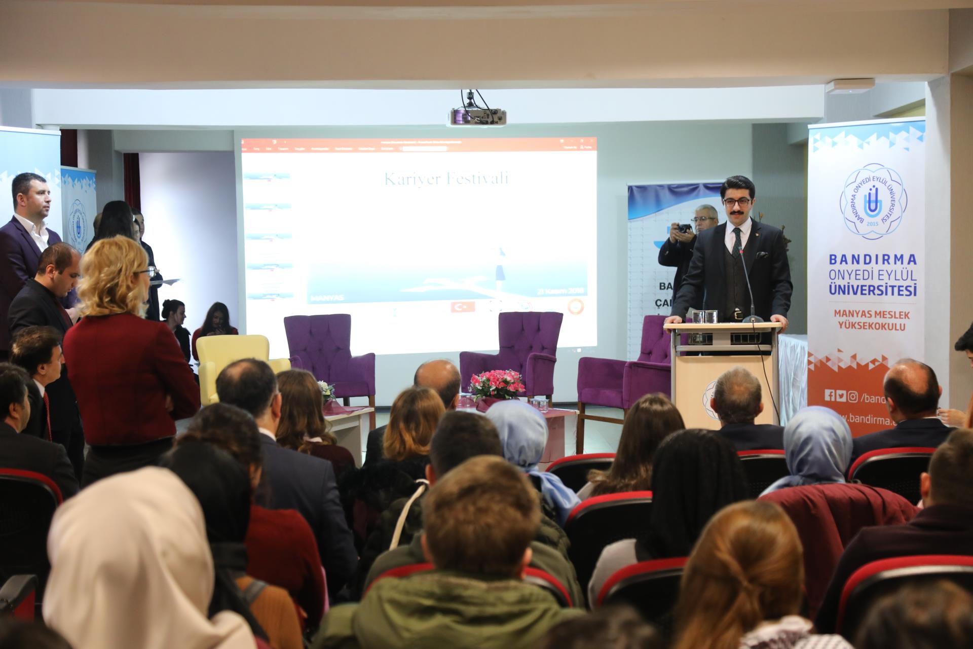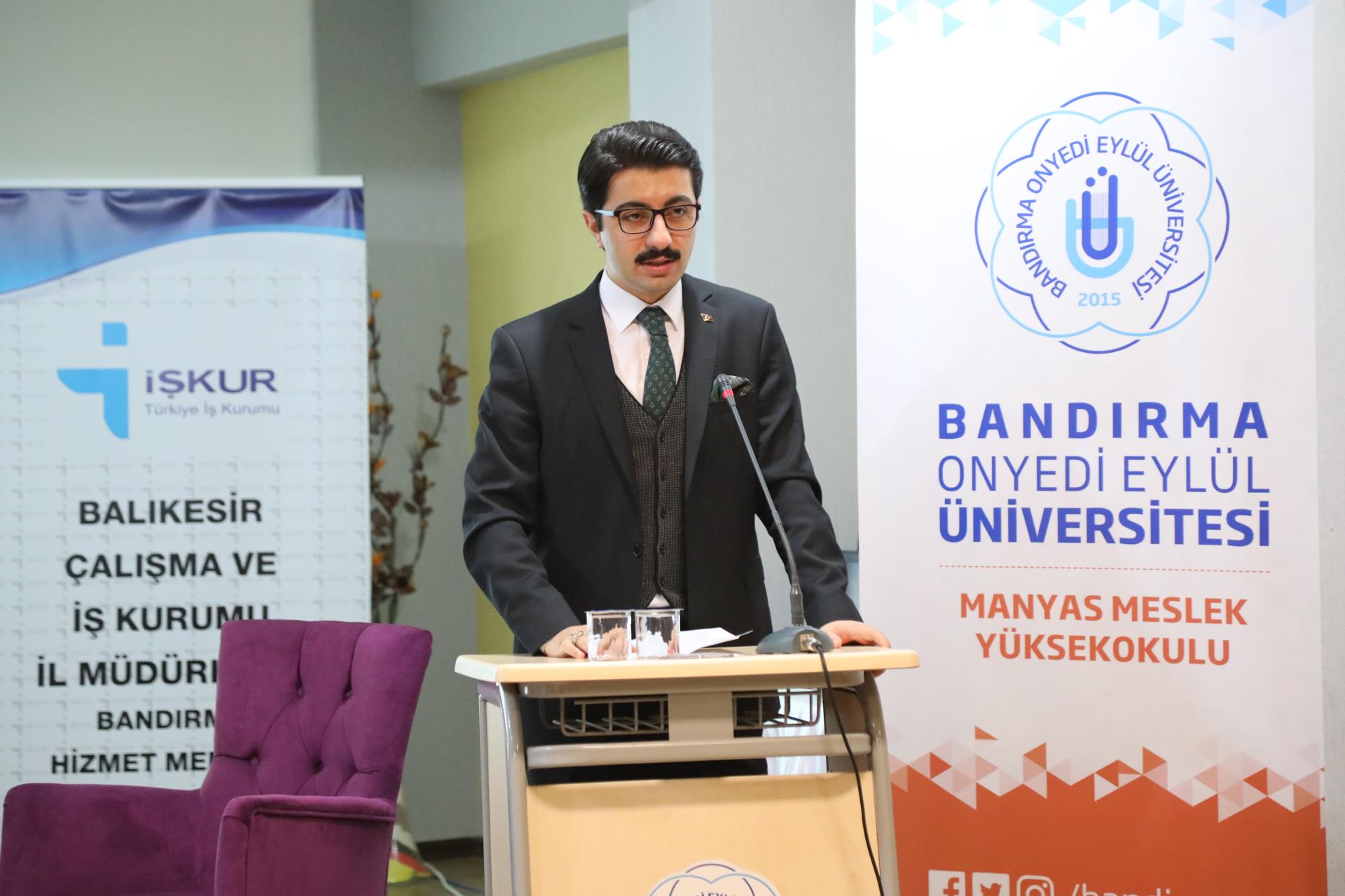 Manyas Kaymakamı Muhammed Kaya gerçekleştirdiği açış konuşmasında, “Bu programın ilçemizde gerçekleşmesi beni de çok mutlu etti. Üniversite yıllarında bütün öğrencilerin genel korkusu iş bulamamak. Bu süreçte kariyer planlaması çok önemlidir. Nerede, nasıl çalışmak istediğinizi belirlemelisiniz. Kıymetli Rektörümüz Prof. Dr. Süleyman Özdemir’in de bahsettiği gibi, iş bulma alanı rekabet içeren bir alandır. Bu yarışı kazanabilmeniz için kendinizi geliştirmeniz gerekiyor. Zaman çok hızlı geçtiği için planlamanızı üniversiteye başladığınız ilk yıl yapmalısınız. En iyi mesleki kariyer planlamanızı elbette ki sizler yapacaksınız. Bizler burada, sadece size yol gösterici bir konumda bulunuyoruz. Bu etkinliğin hepimiz için hayırlı olmasını diliyor, sizleri saygı ve sevgi ile selamlıyorum.” dedi.