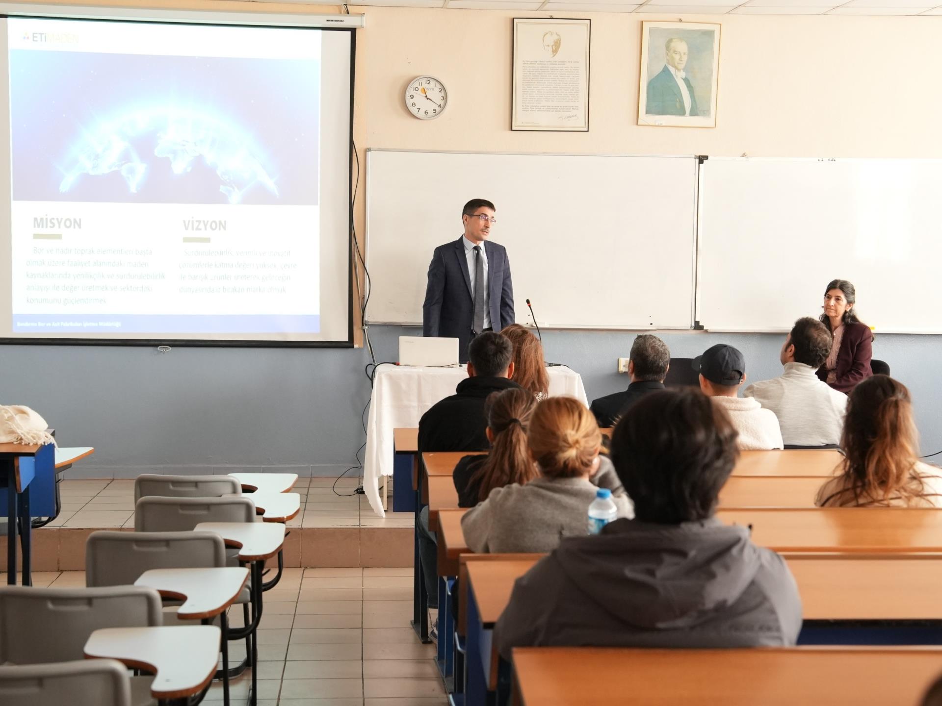 Bandırma MYO A5 Dersliğinde gerçekleştirilen etkinliklerde, farklı sektörlerden uzman isimler öğrencilerle bir araya geldi. Kariyer Günleri kapsamında; Dış Ticaret Bölümü öğrencilerine yönelik olarak Bandırma Çelebi Limanı Operasyon Müdürü Erhan Bambal tarafından liman işletmeciliği ve dış ticarette kariyer olanakları ele alındı. Gıda İşleme Bölümü öğrencileri ise Bu Piliç Laboratuvar ve Sağlık Müdürü Tuğçe Serim Kanar tarafından gerçekleştirilen “Bölgede Tavukçuluğun Geleceği” başlıklı söyleşide sektörün mevcut durumu ve kariyer fırsatları hakkında bilgilendirildi. Kariyer Günü Etkinliklerinin dördüncü gününde ise Eti Maden Bor ve Asit Fabrikaları İşletme Müdür Yardımcıları Muhammet Yakup Çetin ve Hülya Tüzün, “Eti Maden’in Üretimden Lojistiğe Uzanan Hikâyesi” başlıklı sunumlarıyla öğrencilerle buluştu. Söyleşide, Eti Maden’in üretim süreçlerinden lojistik faaliyetlerine uzanan işleyişi ve sektördeki kariyer olanakları ele alındı.