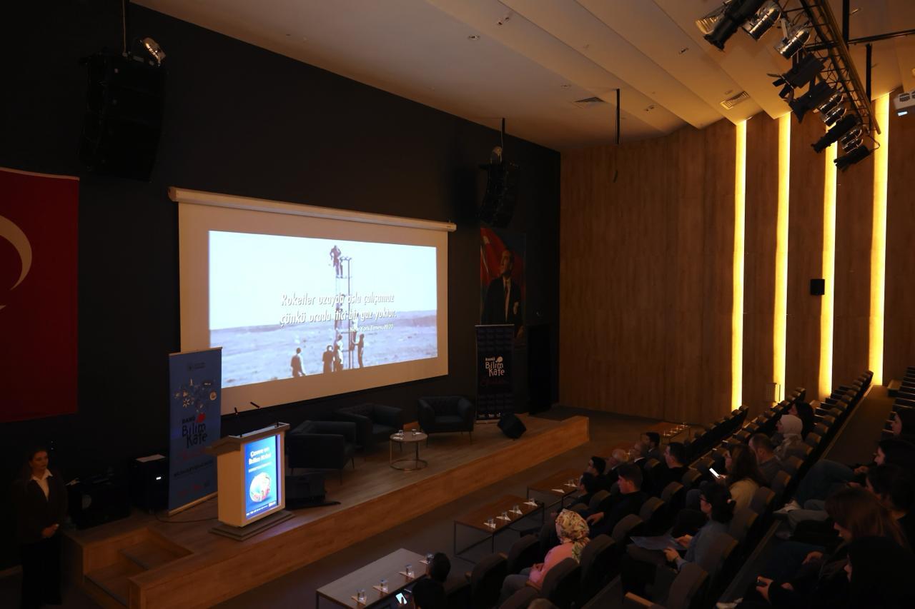 Program, saygı duruşu ve İstiklal Marşı’nın okunmasının ardından Bilim İletişimi Ofisi Koordinatörümüz Öğr. Gör. Muhammet Yörübulut’un açılış konuşmasıyla başladı. Yörübulut, konuşmasında Bilim Kafe Etkinlikleri’nin amacı ile Bilim İletişimi Ofisi tarafından yürütülen çalışmalar hakkında katılımcılara bilgi verdi.