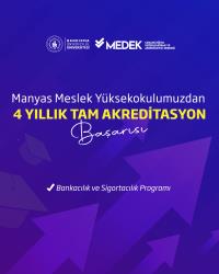 Manyas Meslek Yüksekokulumuz Bankacılık ve Sigortacılık Programı, Mesleki Eğitim Değerlendirme ve Akreditasyon Derneği (MEDEK) tarafından 4 yıl süreyle tam akreditasyon almaya hak kazandı.