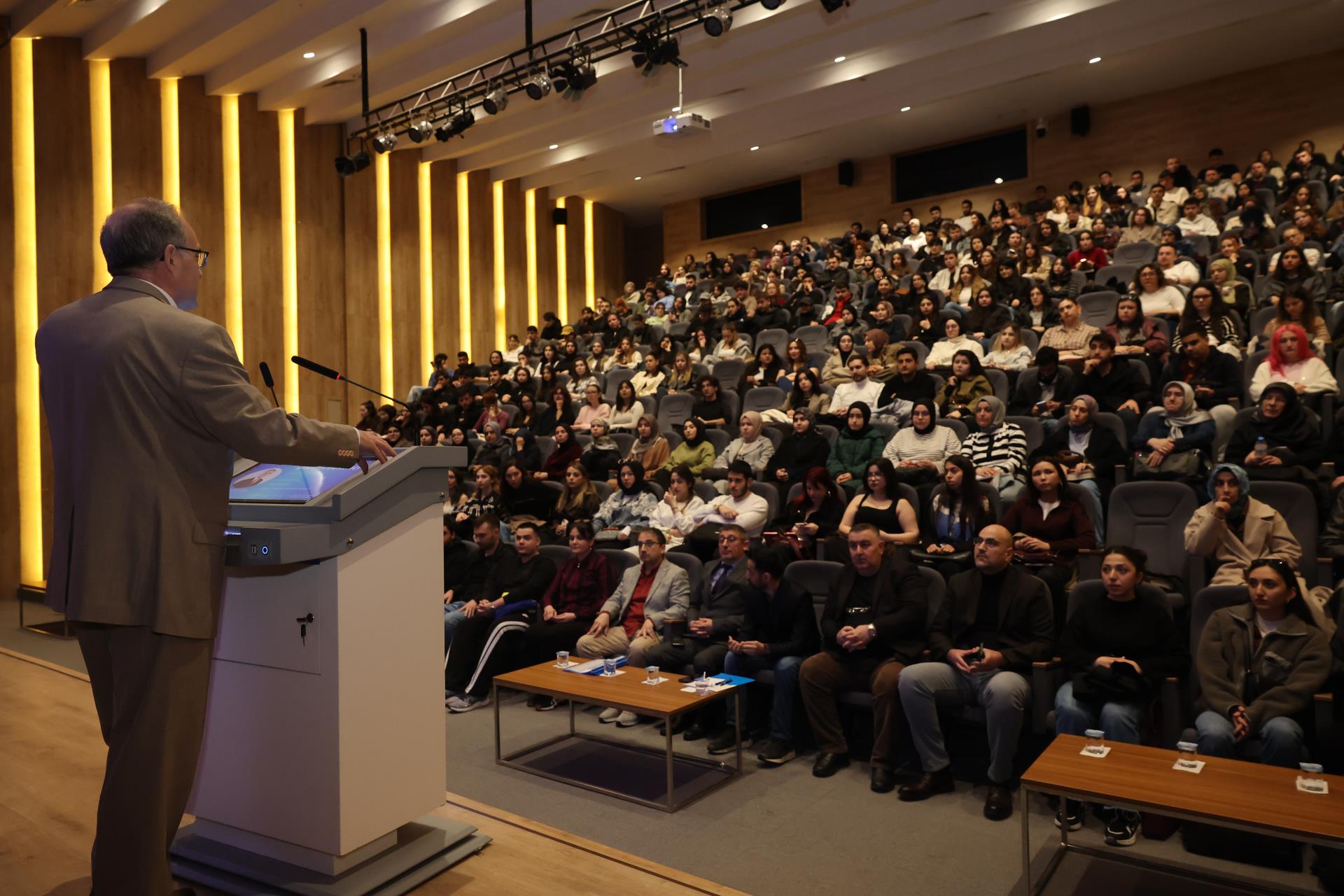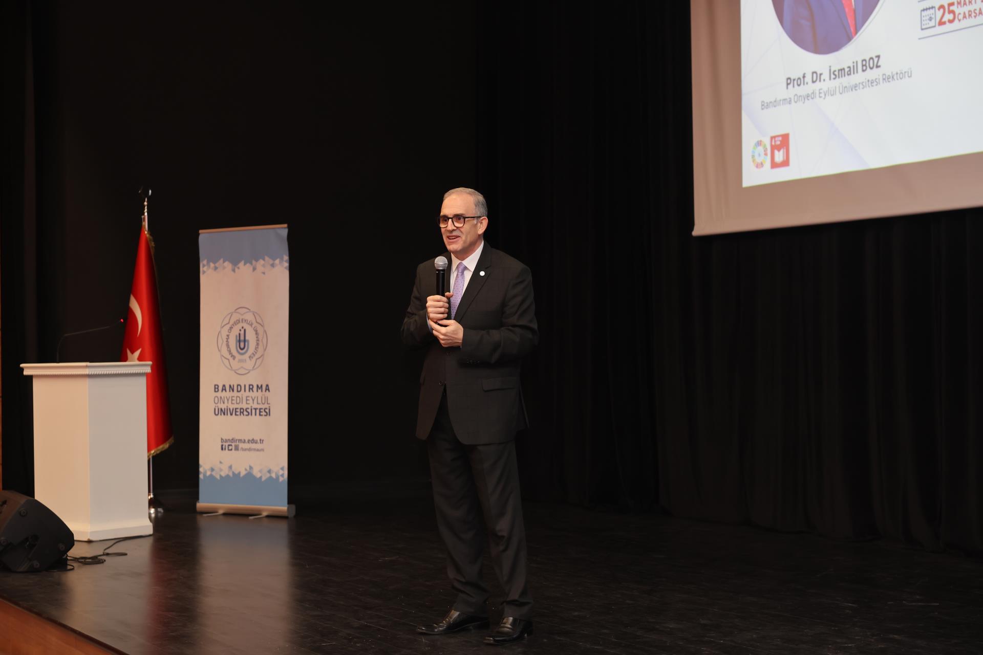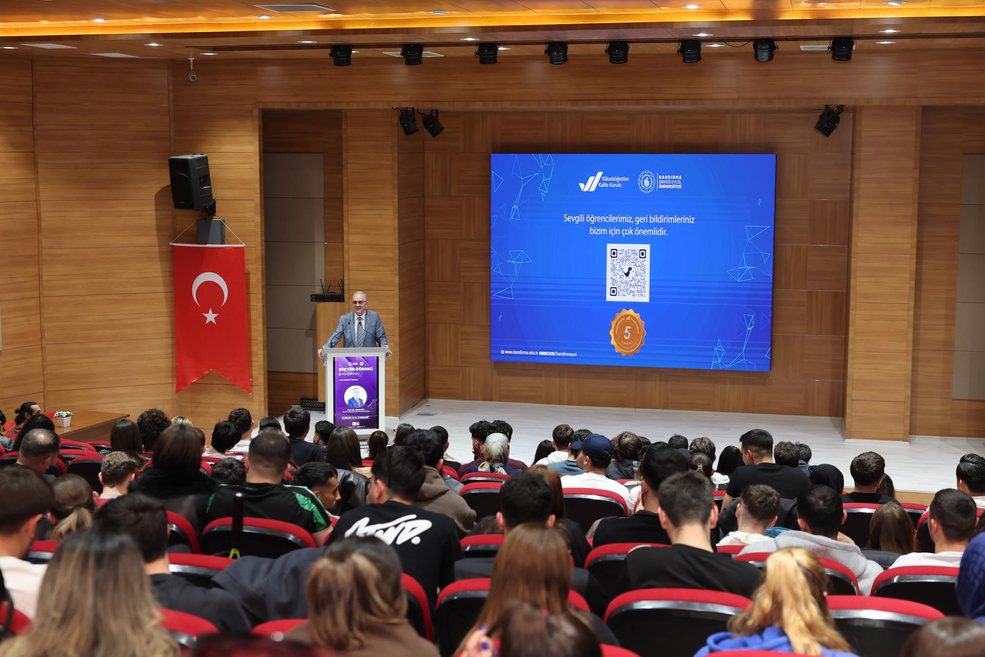 Öğrenci odaklı yönetim anlayışının tüm süreçlerin merkezinde yer aldığını vurgulayan Rektörümüz Prof. Dr. İsmail Boz, öğrencilerle doğrudan iletişimin önemine değinerek, “Sizlerle bir arada olmak, sorunları birinci ağızdan dinlemek ve çözüm yollarını birlikte geliştirmek önceliğimizdir.” dedi.