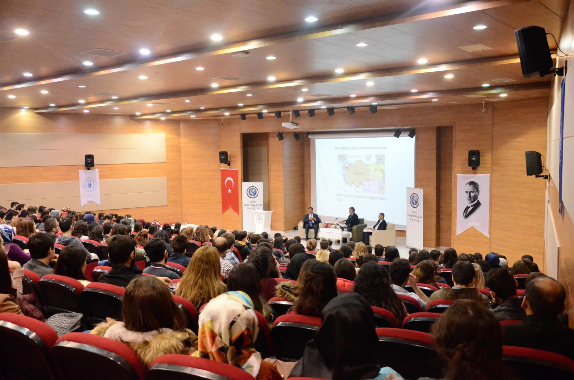 Üniversitemizde Genç Araştırmacılar Topluluğu tarafından organize edilen "Irak Türkmen Boylarının Jeopolitik Önemi ve Geleceği" adlı panel düzenlendi. Üniversitemiz Uluslararası İlişkiler Bölüm Başkanı Yrd. Doç. Dr. Alptekin Molla' nın moderatörlüğünde yapılan panele Çankaya Üniversitesi Öğretim Üyesi Prof. Dr. Mahir Nakip ve BİLGESEM Ortadoğu Araştırma Uzmanı Ali Semin konuşmacı olarak katıldı.