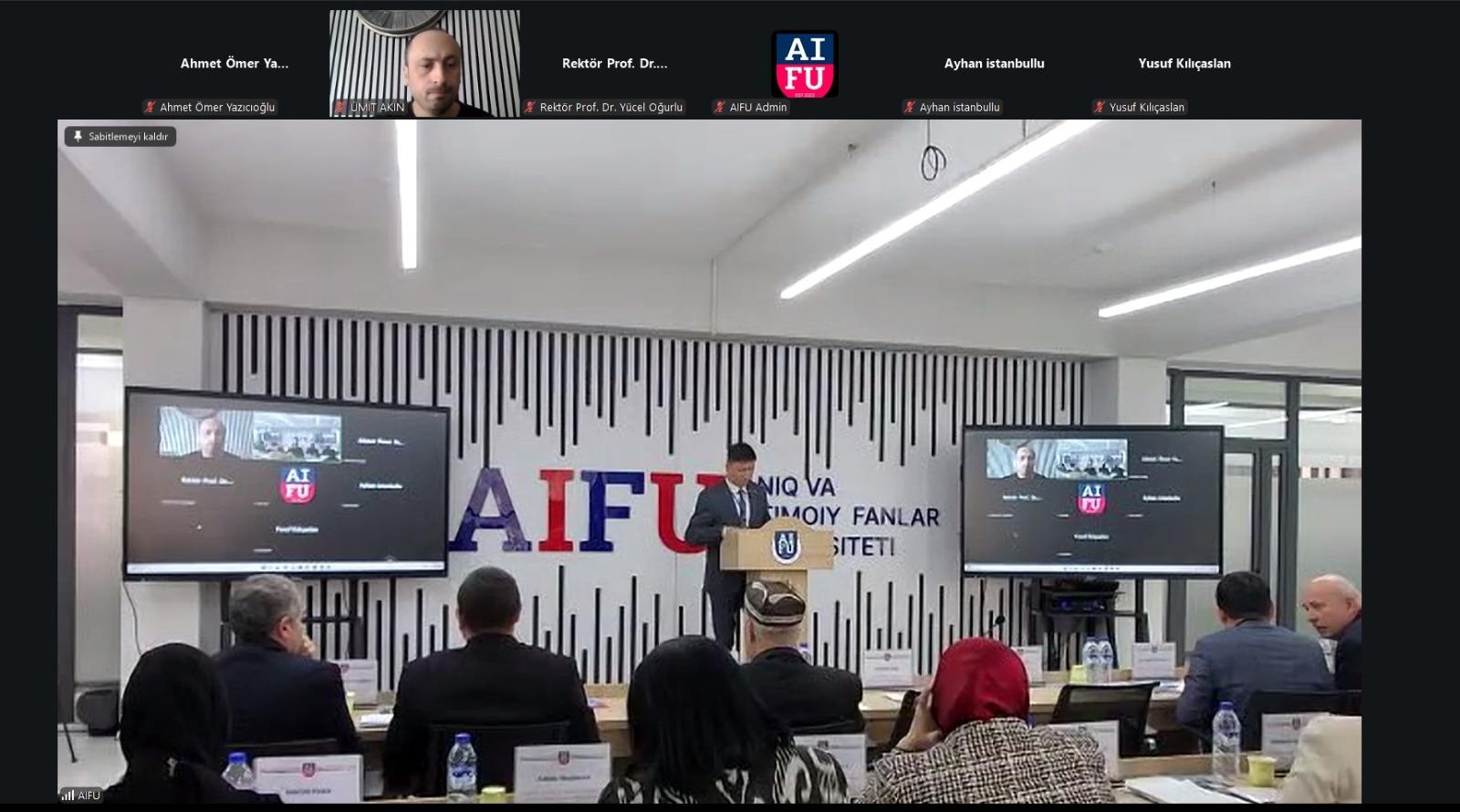 Konferans programı kapsamında gerçekleştirilen açılış oturumunda Rektör Yardımcımız Prof. Dr. Mehmet Emin Erçakar, Türkiye ile Özbekistan arasındaki tarihî, kültürel ve akademik bağlara dikkat çekmiş; iki ülke üniversiteleri arasında geliştirilen iş birliklerinin Türk dünyasının ortak hafızası ve bilimsel üretimi açısından taşıdığı önemi vurguladı. Bu çerçevede, Üniversitemiz ile Özbekistan’da faaliyet gösteren Aniq va Ijtimoiy Fanlar Universiteti arasında bilim, eğitim ve kültür alanlarında ortak çalışmalar yürütülmesi amacıyla imzalanan iş birliği protokolüne değinerek söz konusu protokolün somut akademik projeler, öğrenci ve öğretim elemanı hareketliliği ile ortak bilimsel faaliyetlere zemin hazırlayacağını ifade etti.