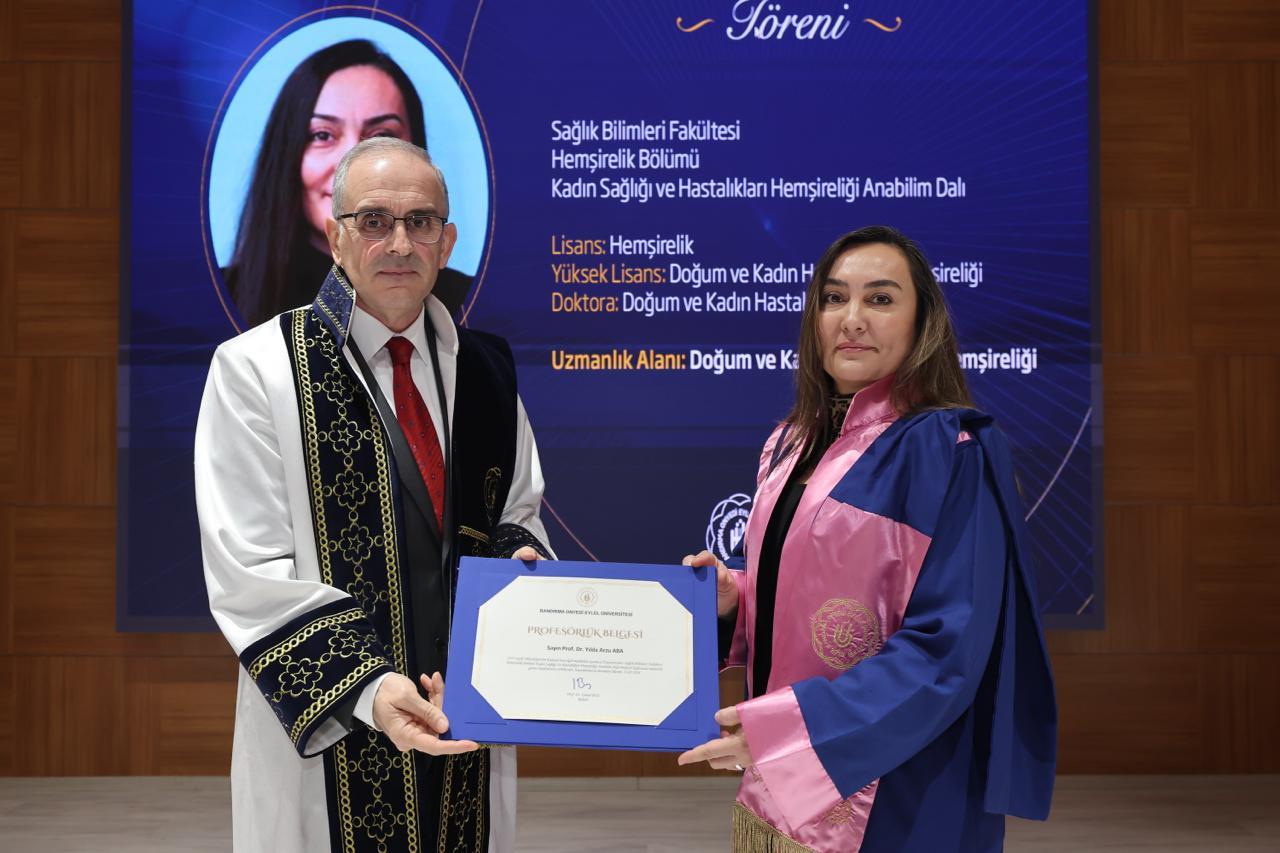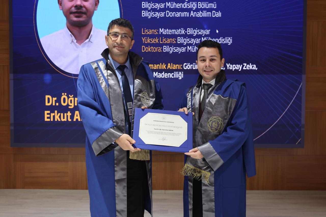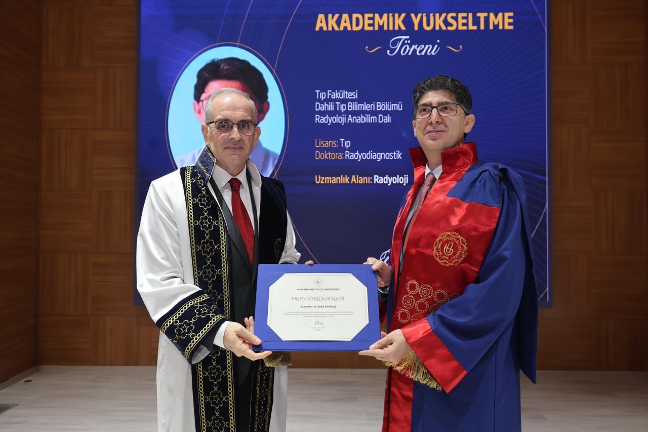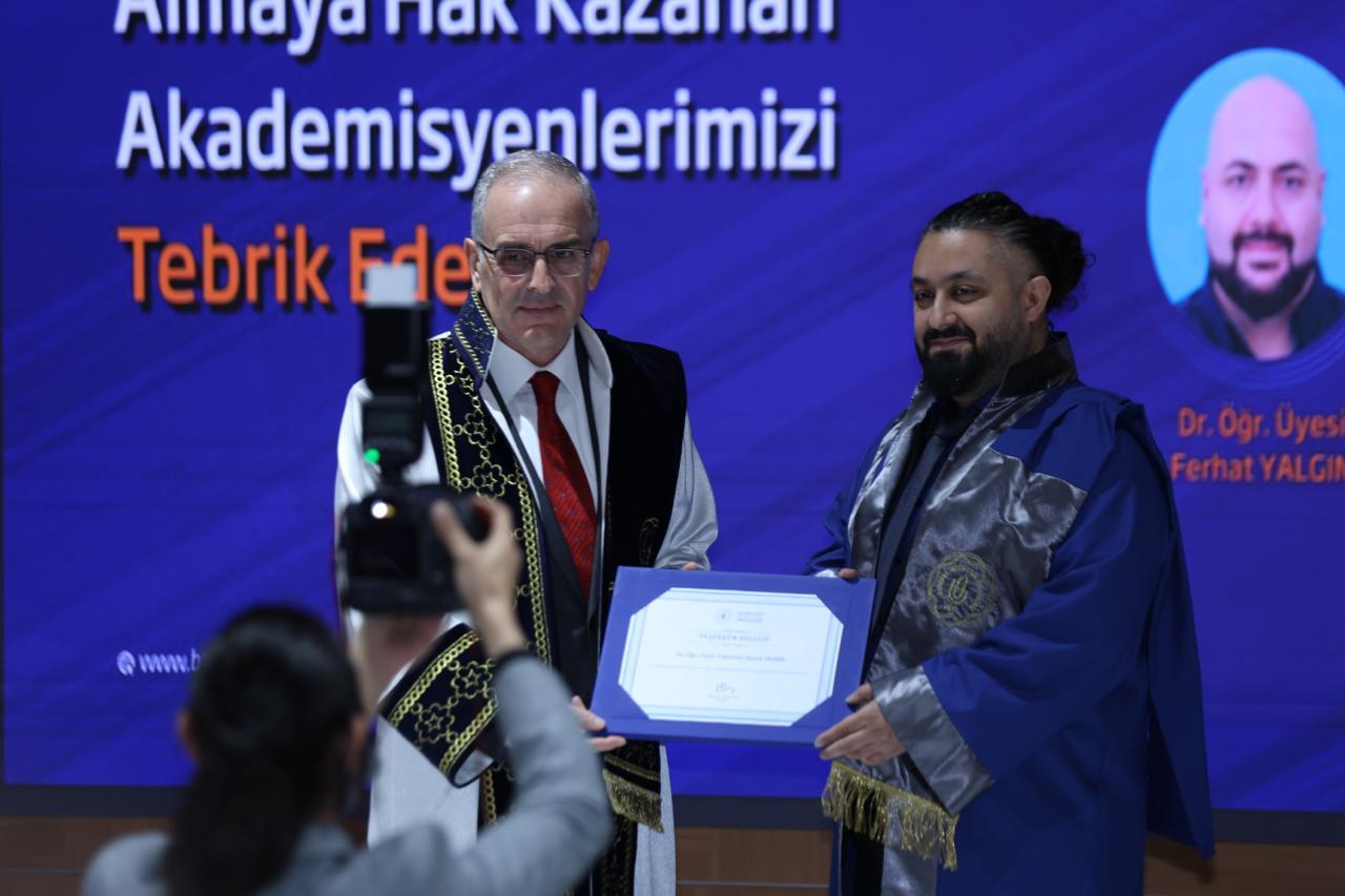 Akademik yükseltme süreci kapsamında ise; 2024 ve 2025 yıllarında profesör, doçent ve dr. öğretim üyesi unvanlarını almaya hak kazanan öğretim üyelerimize belgeleri takdim edildi.