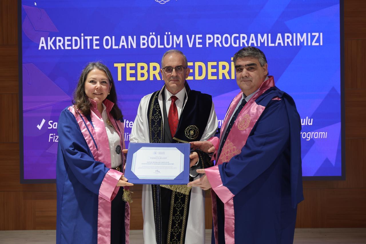 Programın devamında, akreditasyon süreçlerini başarıyla tamamlayarak kalite standartlarını tescilleyen Sağlık Bilimleri Fakültesi Fizyoterapi ve Rehabilitasyon Bölümü ile Manyas Meslek Yüksekokulu Bankacılık ve Sigortacılık Programına akreditasyon belgeleri Rektörümüz Prof. Dr. İsmail Boz tarafından verildi. Bu başarı, Üniversitemizin kalite odaklı eğitim anlayışının somut bir göstergesi olarak değerlendirildi.
