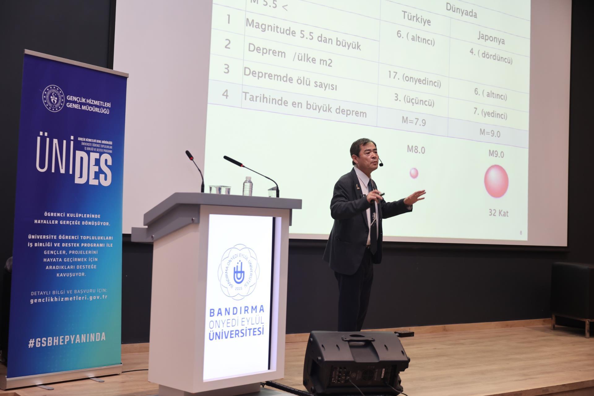 The conference featured Yoshinori Moriwaki, a Senior Architect, Senior Civil Engineer, and Earthquake Science Expert, as the keynote speaker. During the event, topics such as Turkey’s seismic zones, structural safety, individual and community-based precautions, and disaster awareness were discussed. Special emphasis was placed on Bandırma’s earthquake risk and local preparedness efforts.