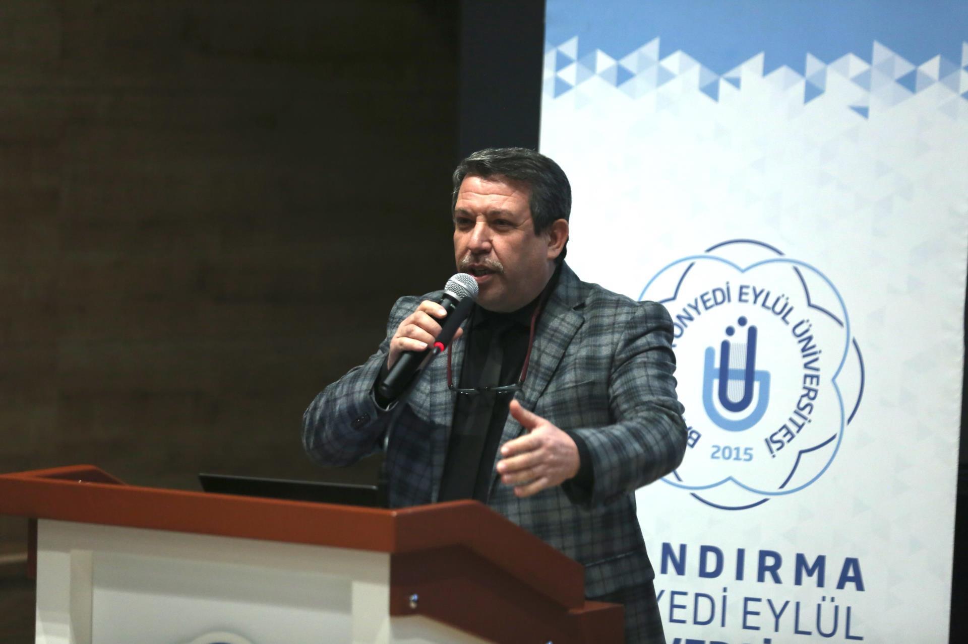 The symposium was attended by the Dean of the Faculty of Health Sciences, Prof. Dr. Hüseyin Eseceli; the Head of the Department of Social Work, Assoc. Prof. Dr. Fatih Altun; Prof. Dr. Recep Yıldız; the Director of the Women, Family, and Community Services Application and Research Center, Assoc. Prof. Dr. Zeynep Aca; Assoc. Prof. Dr. Fikri Keleşoğlu; the Head of the Department of Health, Culture, and Sports, Mehmet Karatepe; and students.