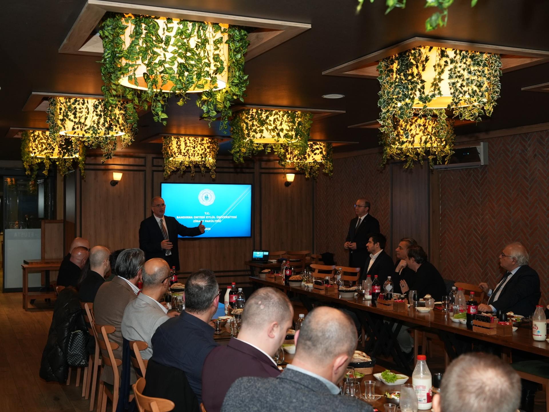 Toplantıya Rektörümüz Prof. Dr. İsmail Boz’un yanı sıra Bandırma Kaymakamı Engin Aksakal, Bandırma Belediye Başkanı Dursun Mirza ve dış paydaşlarımız olan bölgemizin iş dünyasındaki önde gelen isimleri katılım sağladı. Toplantıda, Rektör Yardımcılarımız Prof. Dr. Alpaslan Serel, Prof. Dr. Ebru Kaya Mutlu, Prof. Dr. Mehmet Emin Erçakar ve Genel Sekreterimiz Cihangir Boz hazır bulundu.