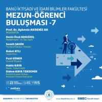 İktisadi ve İdari Bilimler Fakültemiz tarafından, “Mezun-Öğrenci Buluşması” serisinin yedinci programı düzenleniyor. Moderatörlüğünü İktisadi ve İdari Bilimler Fakültesi Öğretim Üyemiz Prof. Dr. Aybeniz Akdeniz Ar’ın üstlendiği ve daha önce Üniversitemizden mezun olarak iş yaşamına başlamış öğrencilerimizin konuşmacı olarak katılacağı program 22 Mayıs 2023 Pazartesi günü saat 19.00’da Webex üzerinden çevrim içi olarak gerçekleşecektir.