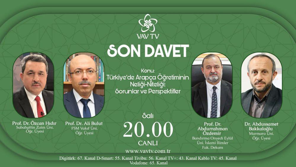 İslami İlimler Fakültesi Dekanımız Prof. Dr. Abdurrahman Özdemir VAV TV’de “Son Davet” programına konuk olacak. 9 Mayıs Salı günü saat 20.00’de canlı olarak yayınlanacak programda Prof. Dr. Abdurrahman Özdemir; “Türkiye’de Arapça Öğretiminin Neliği-Niteliği: Sorunlar ve Perspektifler” konusunda değerli görüşlerini paylaşacak.