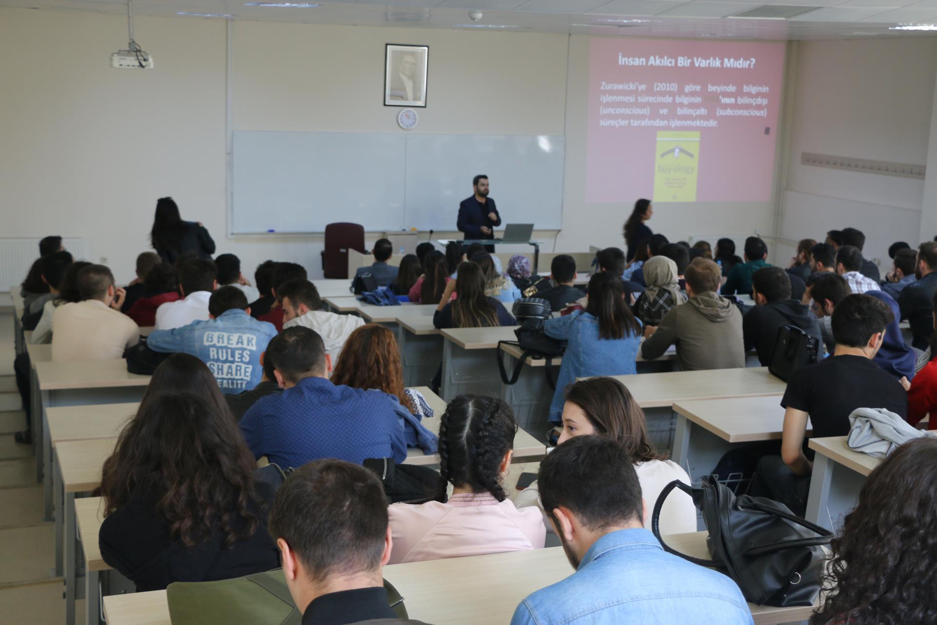 Dünyada pazarlama çalışmalarında yeni bir dönem açan nöropazarlama konusu üniversitemizde yapılan uygulamalı konferansta ele alındı. Uşak Üniversitesi Dr. Öğretim Üyesi Hakan Boz'un konuşmacı olarak katıldığı konferansta Boz beynin nasıl karar aldığından, nöropazarlamanın tüketici davranışlarını anlamlandırmadaki yerine kadar detaylı bilgiler paylaştı.