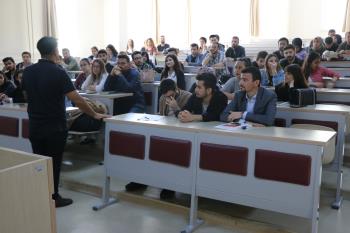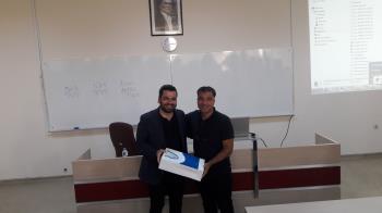 Öğrencilerin ve hocaların ilgi ile takip ettiği konferans Üniversitemiz Öğretim Üyesi Prof. Dr. Erdoğan Koç’un Boz’a konferansa katılımından dolayı hediyesini takdim etmesiyle sona erdi.