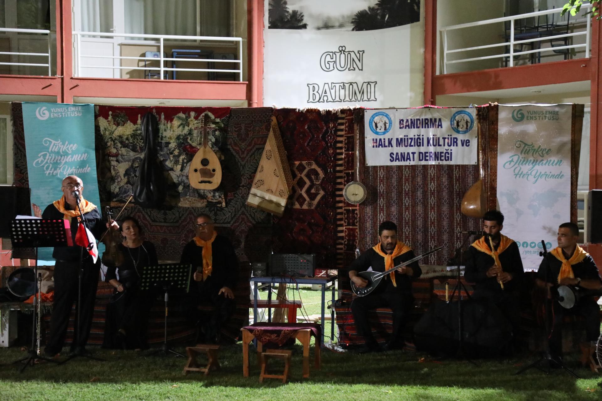 Üniversitemiz tarafından misafir edilen 24 ülkeden 24 uluslararası öğrenci, gün sonunda Erdek Meslek Yüksekokulu’nda düzenlenen sıra gecesine katıldı. Türk kültürünü tanıtmak amacıyla düzenlenen sıra gecesinde, uluslararası öğrencilere folklorik Türk müziği eşliğinde Türk mutfağının vazgeçilmez lezzetleri tanıma imkanı sunuldu.