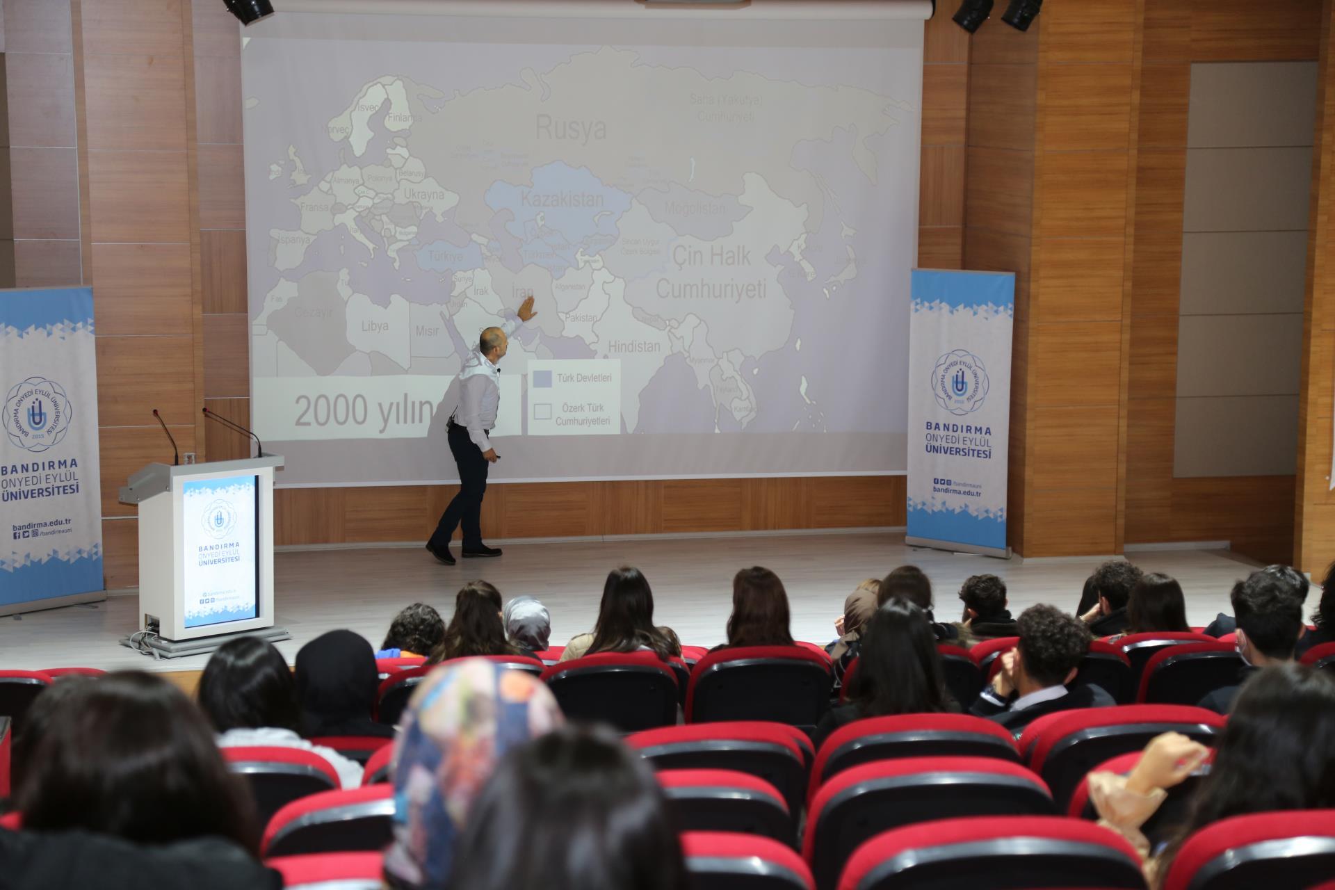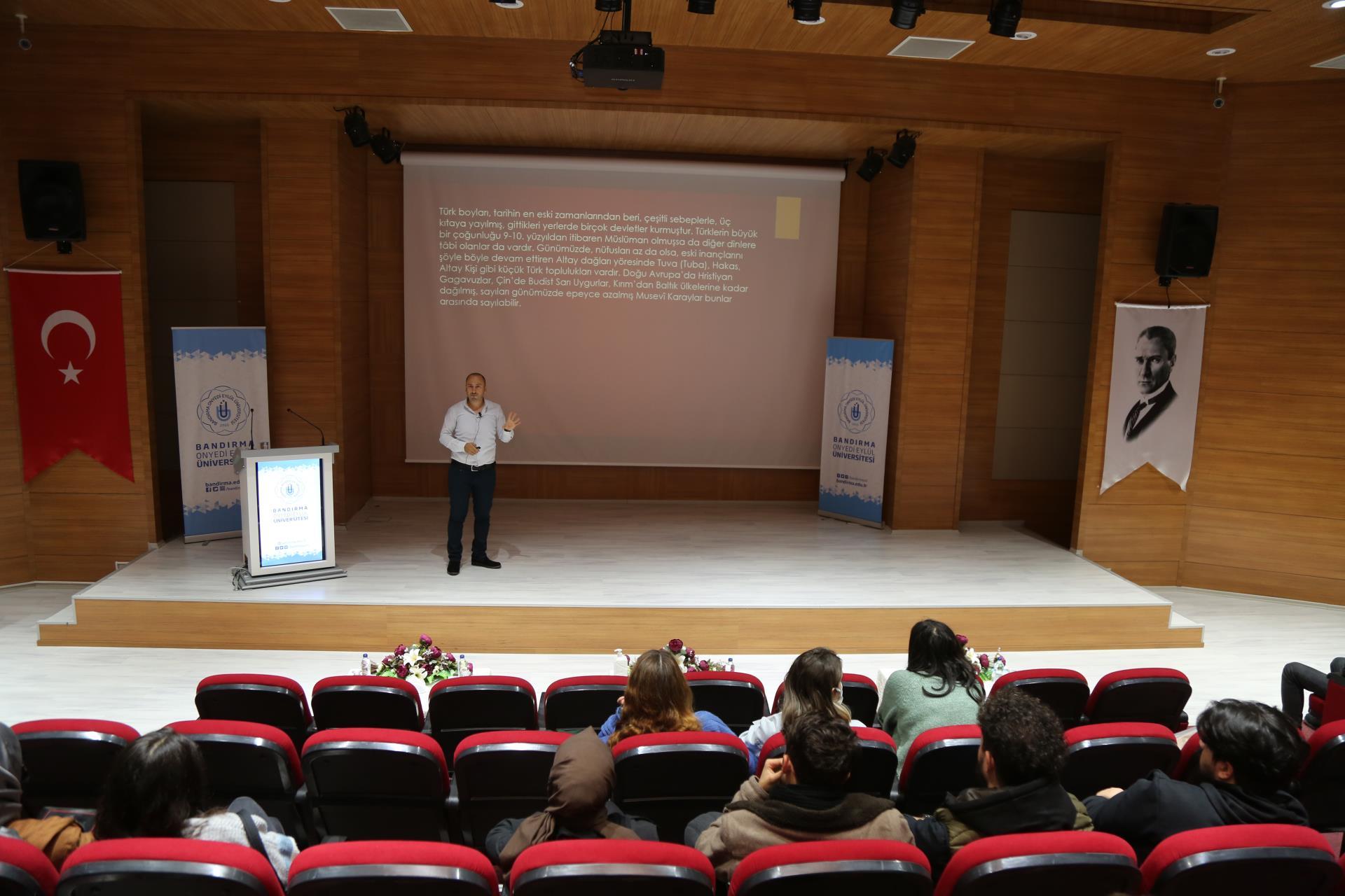 Türkoloji Topluluğumuz tarafından düzenlenen ve Prof. Dr. Fuat Sezgin Konferans Salonu'nda yapılan programa konuşmacı olarak Türk Dili ve Edebiyatı Bölümü Öğretim Üyesi Doç. Dr. Ümit Akın konuşmacı olarak katıldı. Akın programda Türk dünyasında edebiyatın nasıl yer aldığına ilişkin detaylı bir sunum yaptı. Program öğrencilerden gelen soruların cevaplandırılmasının ardından sona erdi.