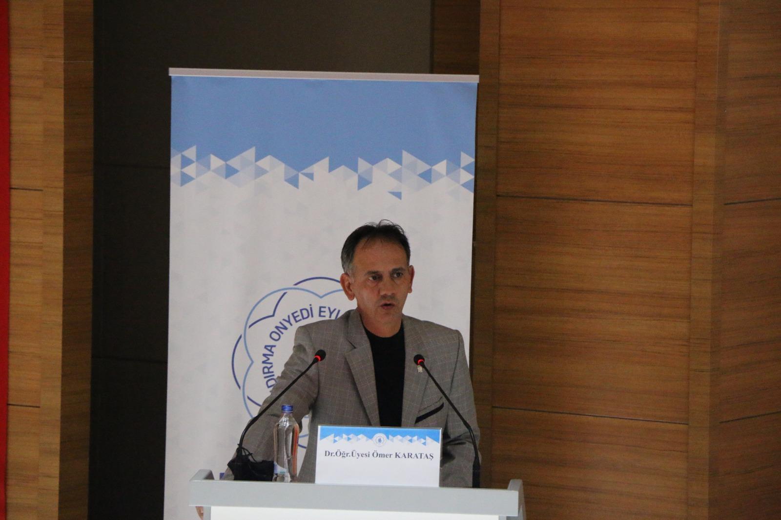 Konferansa konuşmacı olarak İnsan ve Toplum Bilimleri Fakültemiz, Tarih Bölümü Dr. Öğr. Üyesi Ömer Karataş katıldı. Prof. Dr. Fuat Sezgin Konferans Salonu'nda düzenlenen konferans aziz şehitlerimiz için bir dakikalık saygı duruşunun ardından İstiklal Marşı’nın okunması ile başladı. Konferansın düzenleme amacını anlatan Karataş, “Karaçay Türkleri’ini bugün anarak onlara saygımızı sunmak istiyoruz” dedi.