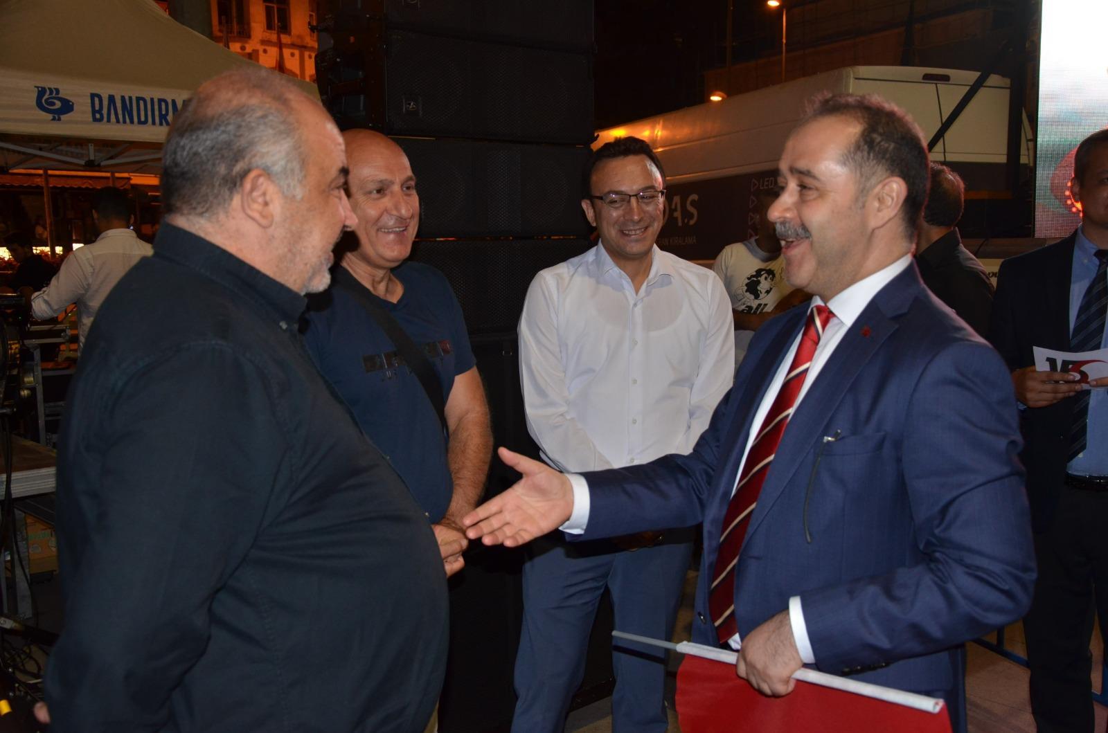 Our Rector Prof. Dr. Süleyman Özdemir also attended the evening democracy watch in Bandırma Cumhuriyet Square as part of the "July 15 Democracy and National Unity Day" program. The program started with the participation of Bandırma District Governor Engin Aksakal, the district protocol and citizens, with a moment of silence and the singing of the Turkish National Anthem, with a cine-vision show, speeches based on the meaning and importance of the day, a mehteran concert and a recital of heroic folk songs. In the program, the Head of the Turkish Language Department of the Faculty of Humanities and Social Sciences, Assoc. Dr. Bahtiyar Aslan made a presentation on “July 15 and Mankurts”.