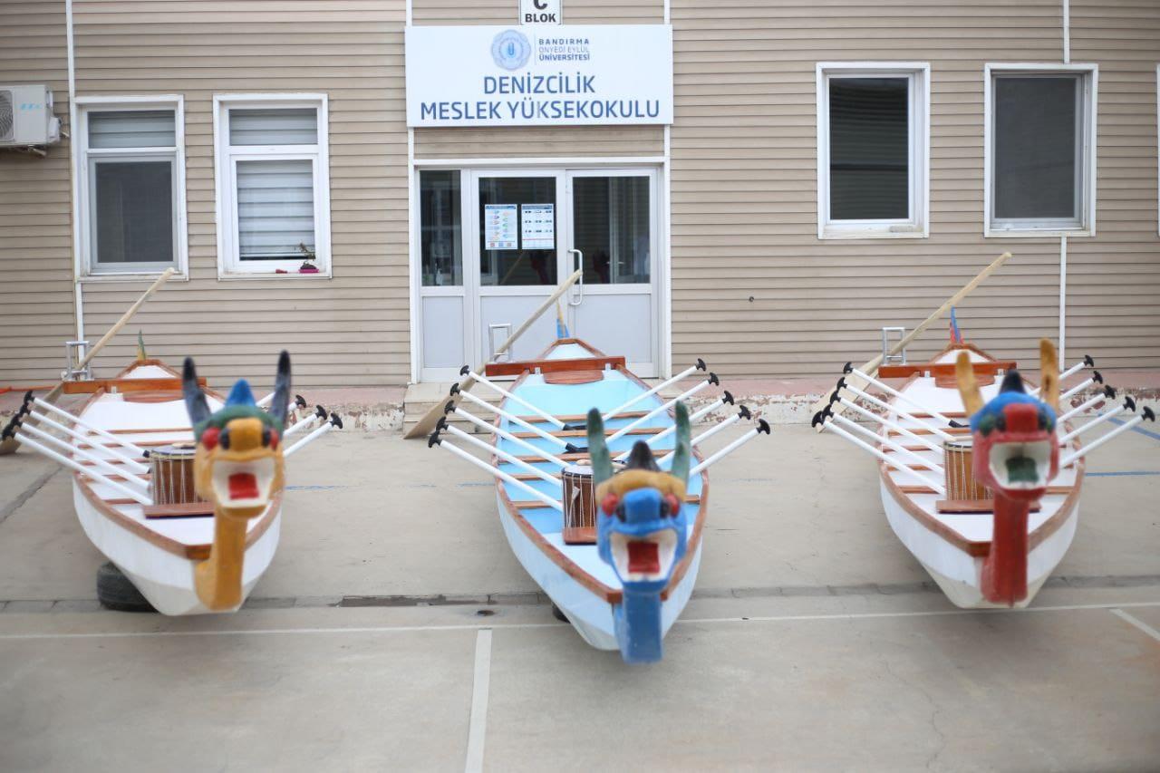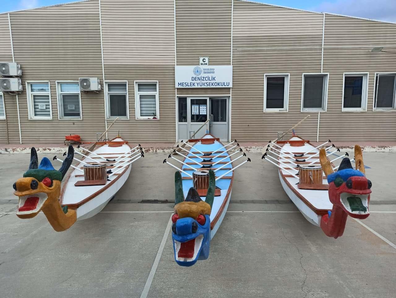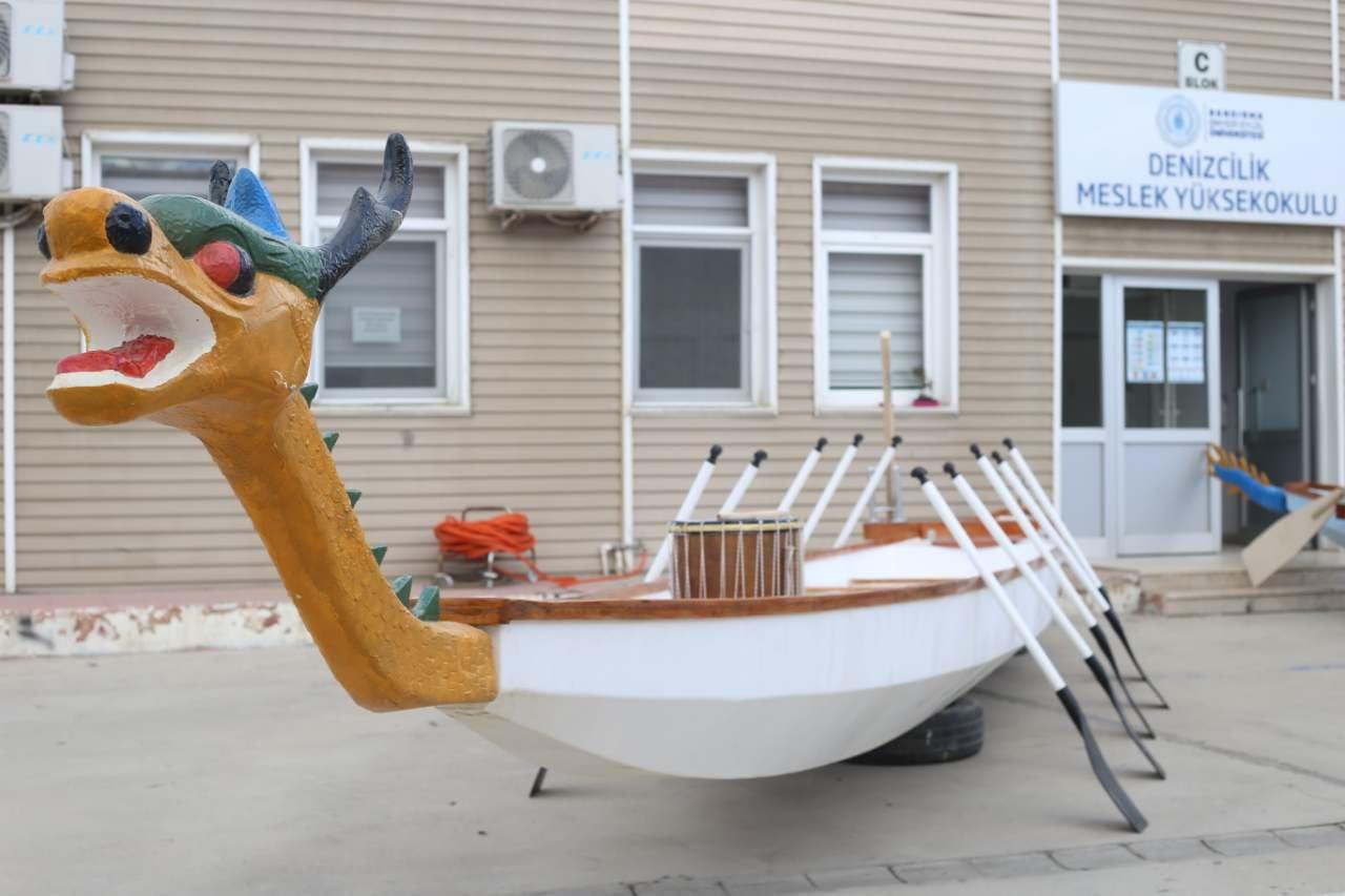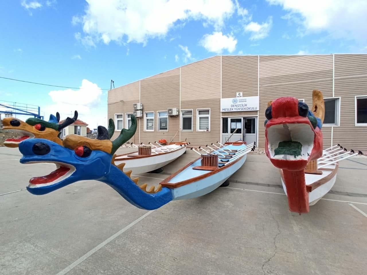 Kurulduğu günden bu yana sürekli gelişim ilkesiyle hareket eden üniversitemizin misyonuna ve vizyonuna katkı sunmayı ilke edinen yüksekokulumuz üretmeye devam ediyor. Bu kapsamda Meslek yüksekokulumuz Gemi İnşaatı Programı bünyesinde Dragon Bot üretimine başlanmıştır. Üretimine başlanan Dragon Botlardan ilk üç adedi tamamlanmıştır. Önümüzdeki dönemlerde de öğretim elemanlarımız gözetiminde öğrencilerimizle sürdürülecek olan dragon botların seri üretimi için gerekli altyapı ve üretim hazırlıkları da sürmektedir. Ayrıca seri üretim süreciyle birlikte dragon botların ilgililere satışı da planlanmaktadır. Üretim sürecinin başından sonuna kadar desteklerini esirgemeyen rektörümüz Sayın Prof. Dr. Süleyman Özdemir'e teşekkür ederiz.