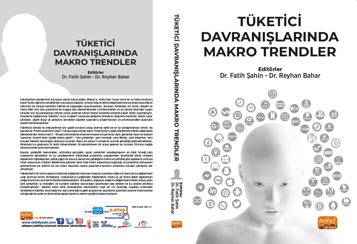Bölümümüz öğretim üyeleri Dr. Öğr. Üyesi Fatih Şahin ve Dr. Öğr. Üyesi Reyhan Bahar tarafından editörlüğü gerçekleştirilen "Tüketici Davranışlarında Makro Trendler" isimli kitap Nobel Bilimsel yayınevi tarafından yayınlanmıştır. Kitap 24 farklı üniversiteden bir araya gelen 30 farklı akademisyen tarafından kaleme alınan 28 konu başlığını kapsamaktadır.