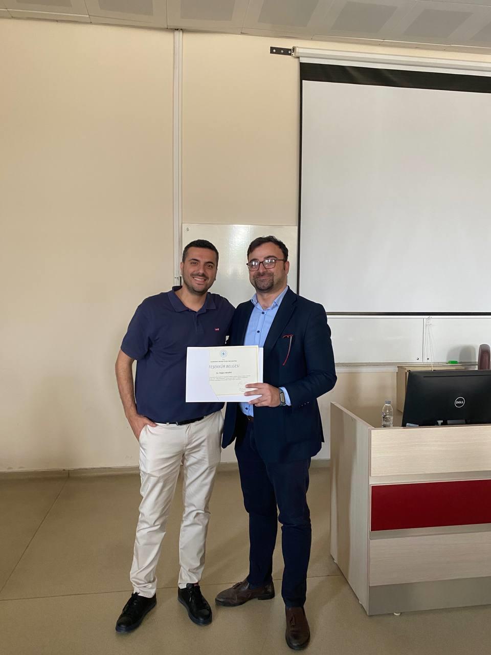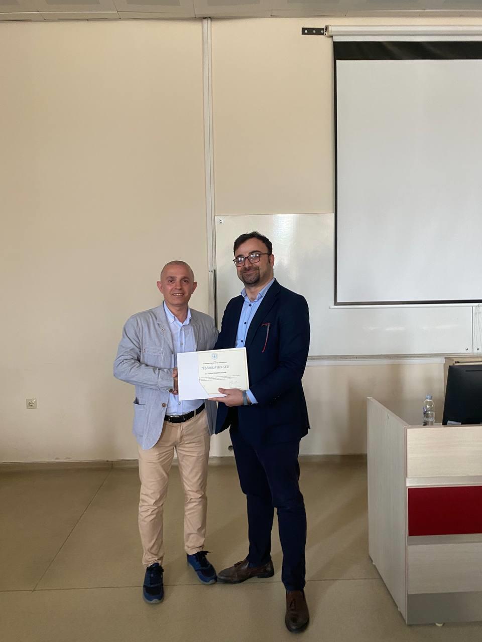 Dersin öğretim üyesi Doç. Dr. Özer YILMAZ, değerli paylaşımları ve katkıları için Sn. Alişan ARSLAN, Sn. Volkan DEMİRPEHLİVAN ve Sn. Doğan GELERLİ’ye teşekkür belgeleri takdim ederek kendilerine bölümümüz adına şükranlarını sunmuştur.