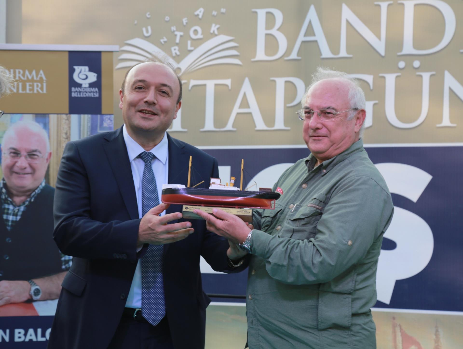Bandırma Kitap Günleri’nin ilk gününde yazarlar ile okurları bir araya getirmek için söyleşi ve imza programları düzenlendi. Rektörümüz Prof. Dr. Süleyman Özdemir de söyleşileri ilgi ile takip ederek, yazar Osman Balcıgil’e günün anısına Bandırma Vapuru maketi hediye etti.