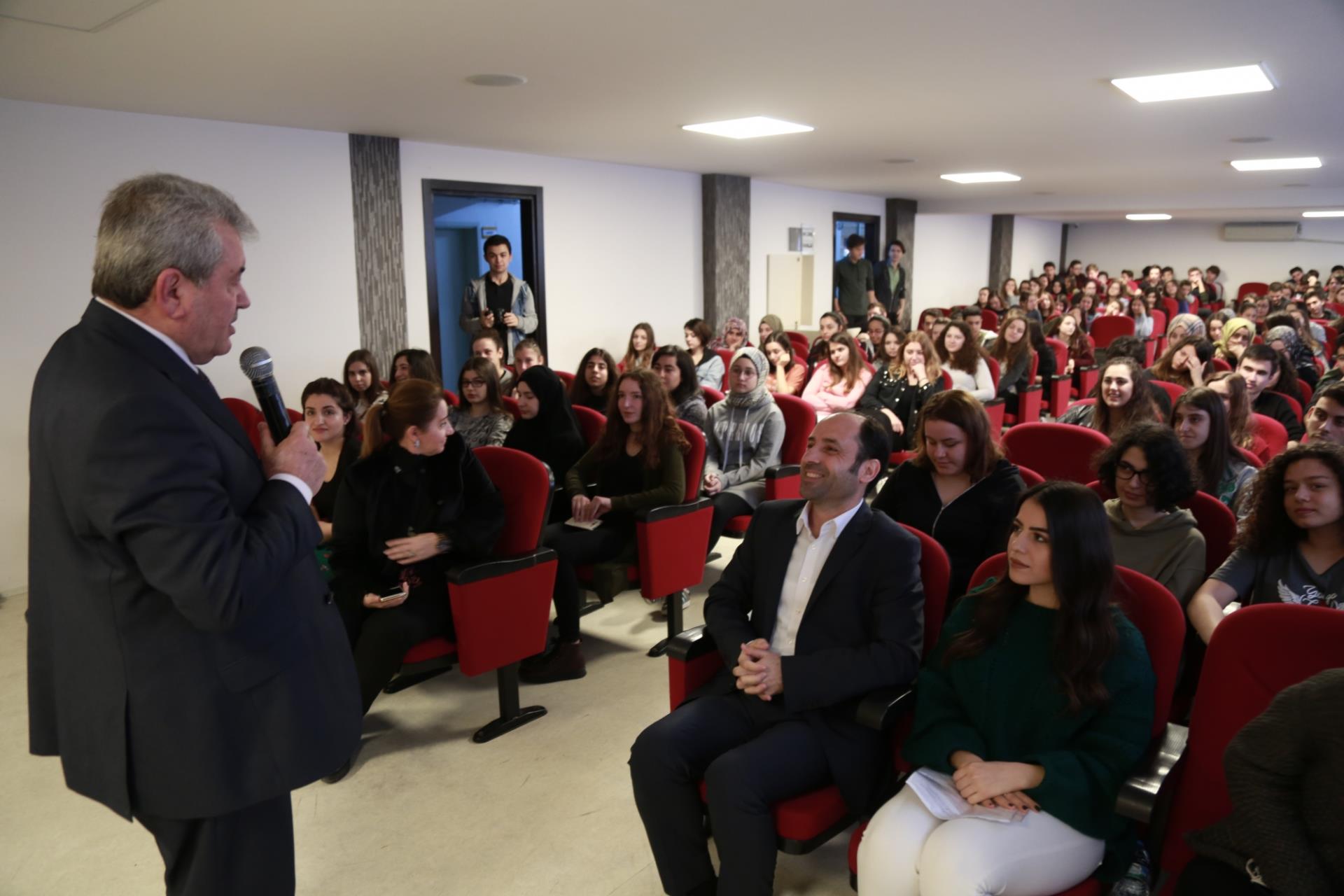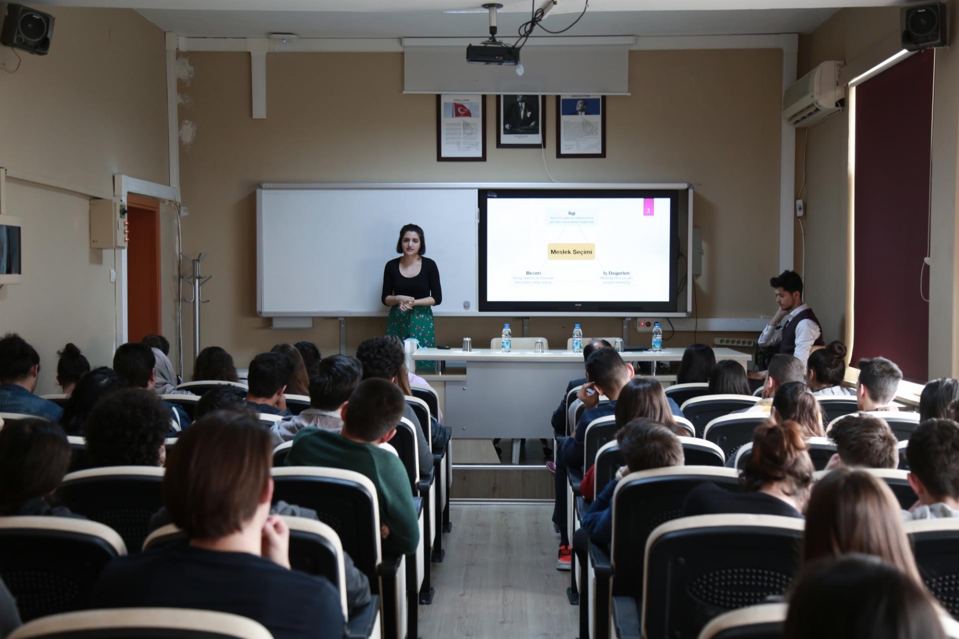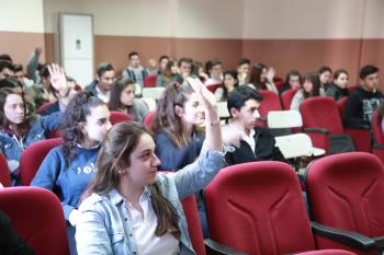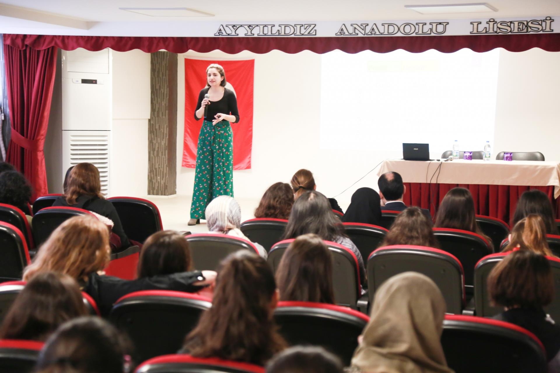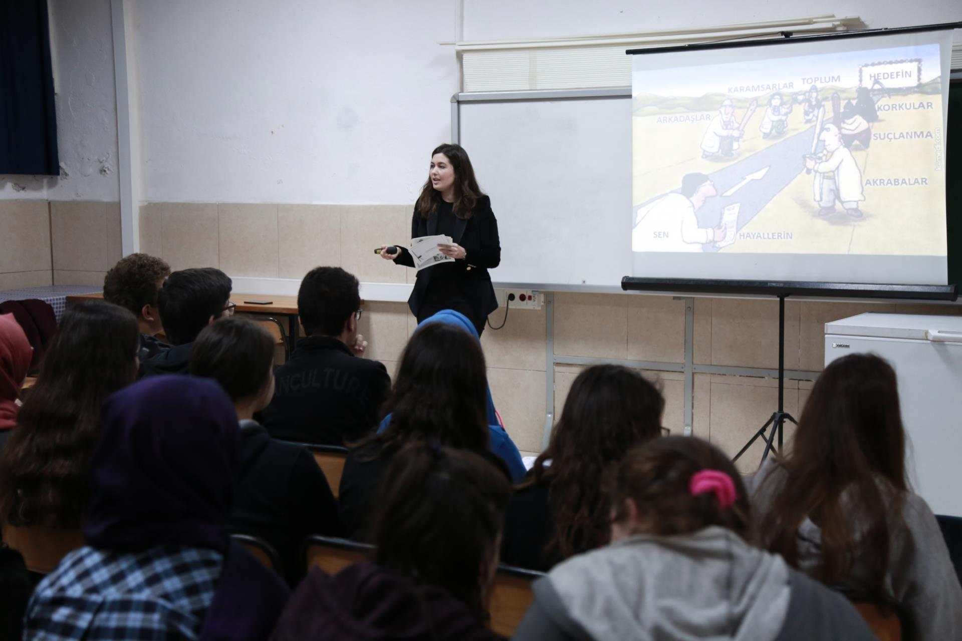 Proje kapsamında gidilen okullarda, meslek ve tercih rehberliği sunumunu üniversitemiz Uygulamalı Bilimler Fakültesi, Medya ve İletişim Bölümü’nden Dr. Öğr. Üyesi Orhan Duman, Dr. Öğr. Üyesi Aysel Kurnaz ve Araş. Gör. Esra Tani yaparken, üniversitemizin genel tanıtımı ise Kurumsal İletişim Koordinatörlüğü’nden Meltem Dengiz tarafından gerçekleştirildi. Liseli öğrencilerin üniversitemiz ile ilgili soruları ise Kurumsal İletişim Koordinatörümüz Ömer Şimşek tarafından cevaplandırıldı.