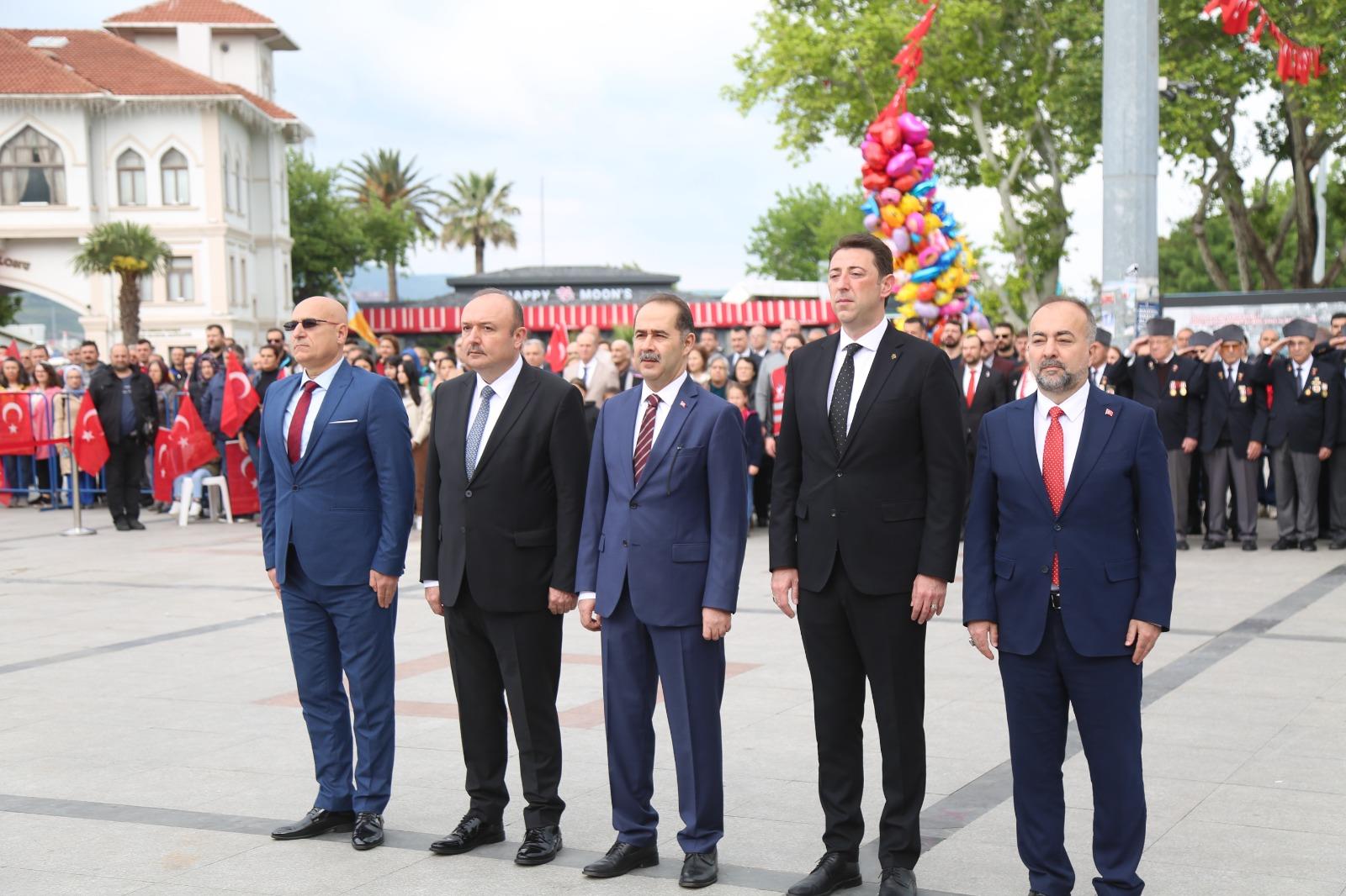 19 Mayıs Atatürk’ü Anma, Gençlik ve Spor Bayramı’nın 104. yıl dönümü tüm Türkiye’de olduğu gibi Bandırma’da da coşkuyla kutlandı. Bandırma Kaymakamlığı tarafından Cumhuriyet Meydanı’nda düzenlenen kutlama programına Üniversitemizi temsilen Rektörümüz Prof. Dr. Süleyman Özdemir’in yanı sıra Bandırma Kaymakamı Engin Aksakal, Balıkesir Büyükşehir Başkan Vekili Mehmet Birol Şahin, Garnizon Komutanı Tuğgeneral Selahattin Akalp, Bandırma Belediye Başkanı Av. Tolga Tosun, Cumhuriyet Başsavcısı Cüneyt Demirdaş, Gençlik ve Spor İlçe Müdürü Hüseyin Elüstü, ilçe protokolü ve vatandaşlar katıldı.