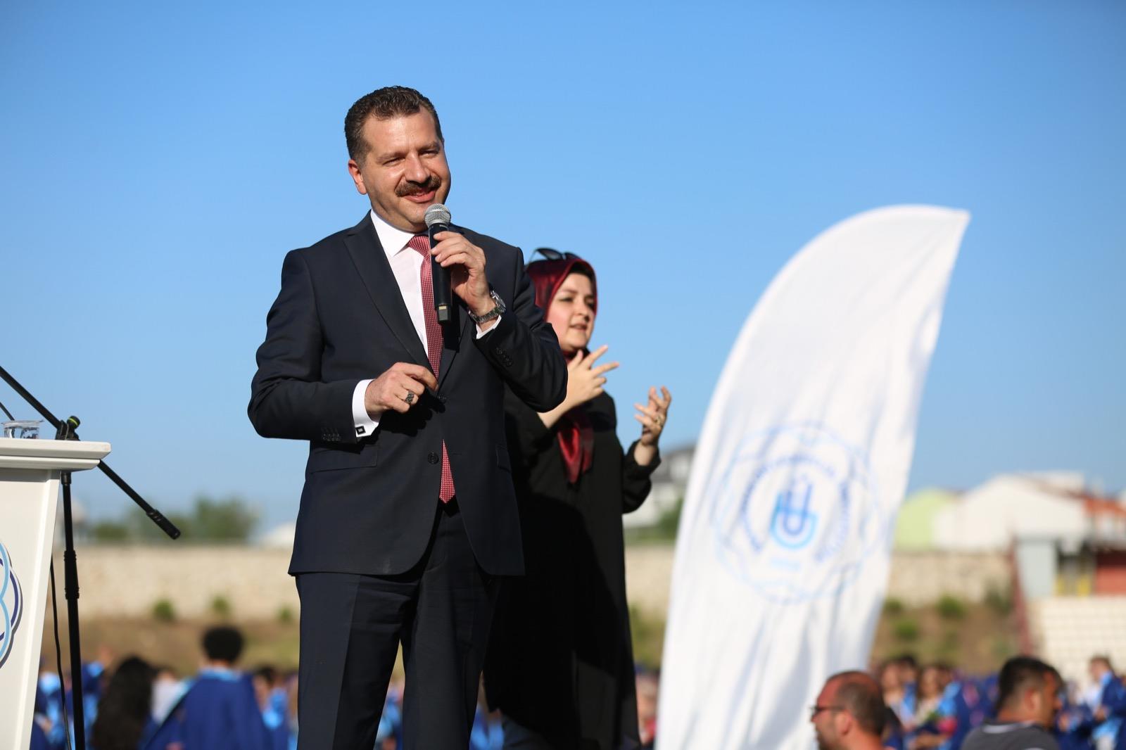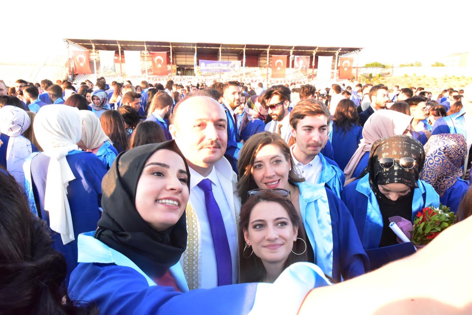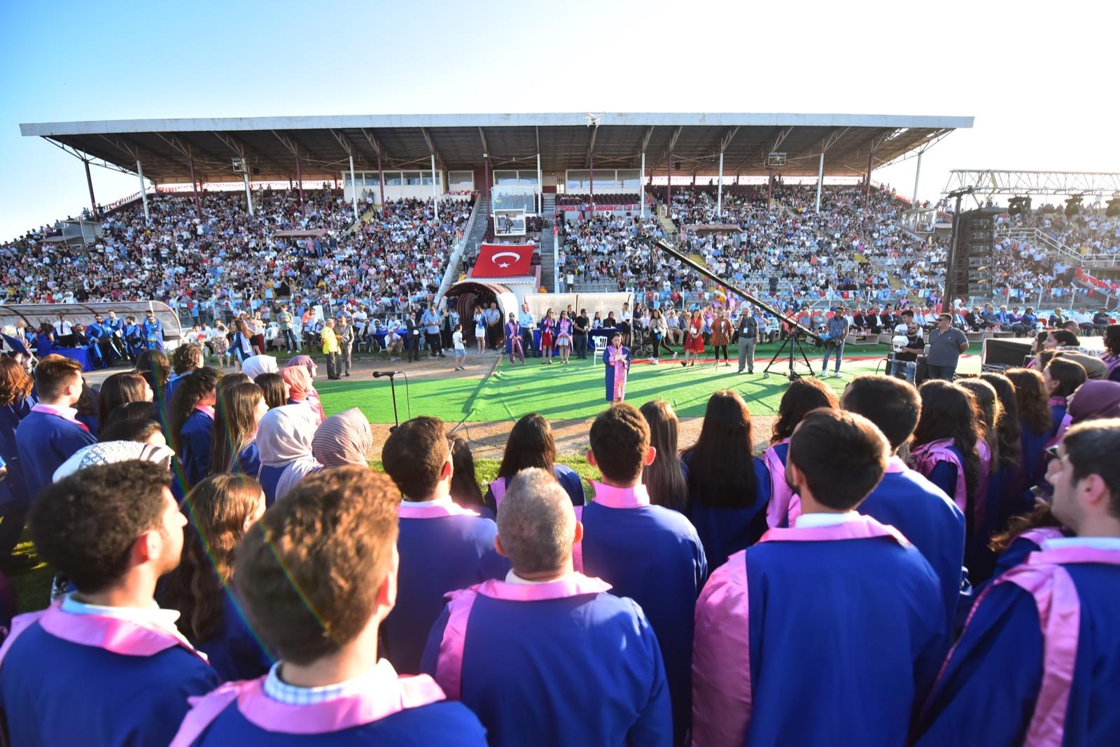 Bugün hem mutluyuz, hem de gururluyuz; 3.000 civarındaki son sınıf öğrencimizi mezun etmenin heyecanını, pırıl pırıl gençlerimizi hayata uğurlamanın, ülkemize kazandırmanın gururunu ve sevincini yaşıyoruz.