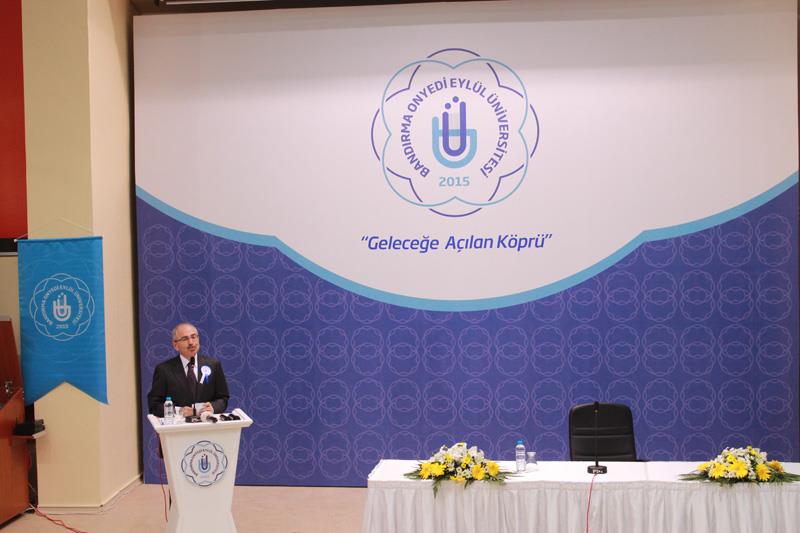 Açılışta konuşan Bandırma Onyedi Eylül Üniversitesi Rektörü Prof. Dr. Süleyman Özdemir, Bandırma Onyedi Eylül Üniversitesi’nin 6 yerleşke, 4 enstitü, 5 fakülte, 1 yüksekokul, 7 bölüm, 16 program, 170 akademik ve idari personel ve 9 bin 475 öğrenciyle 2015-2016 yılı eğitim-öğretimine başladığını söyledi.
