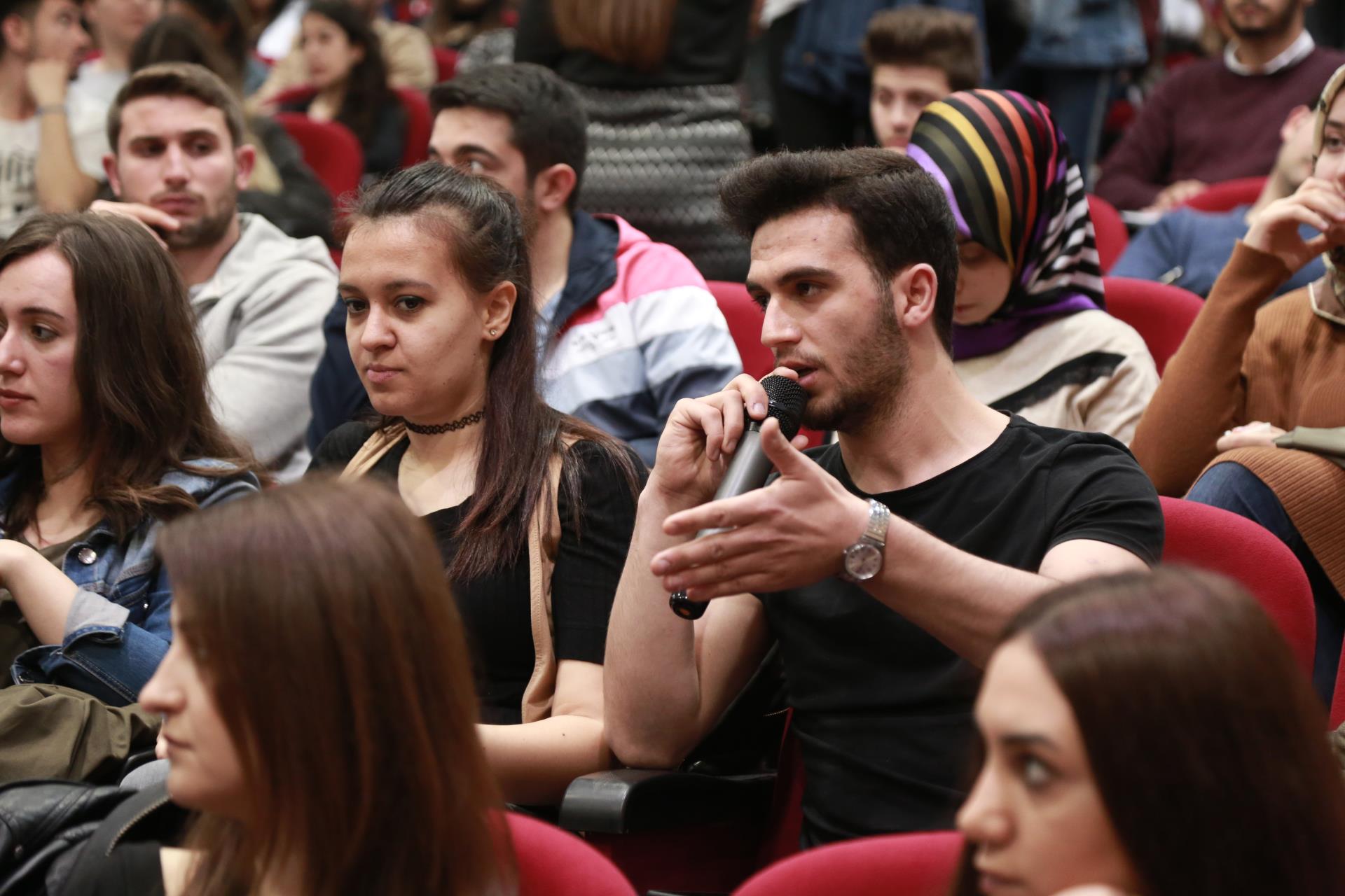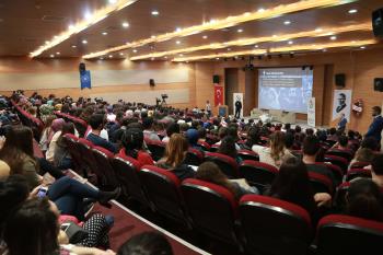Öğrencilerin yoğun ilgi gösterdiği panel, soru cevap bölümünün ardından Rektör Yardımcımız Prof. Dr. Alpaslan Serel’in konuklara plaket takdim etmesiyle sona erdi.