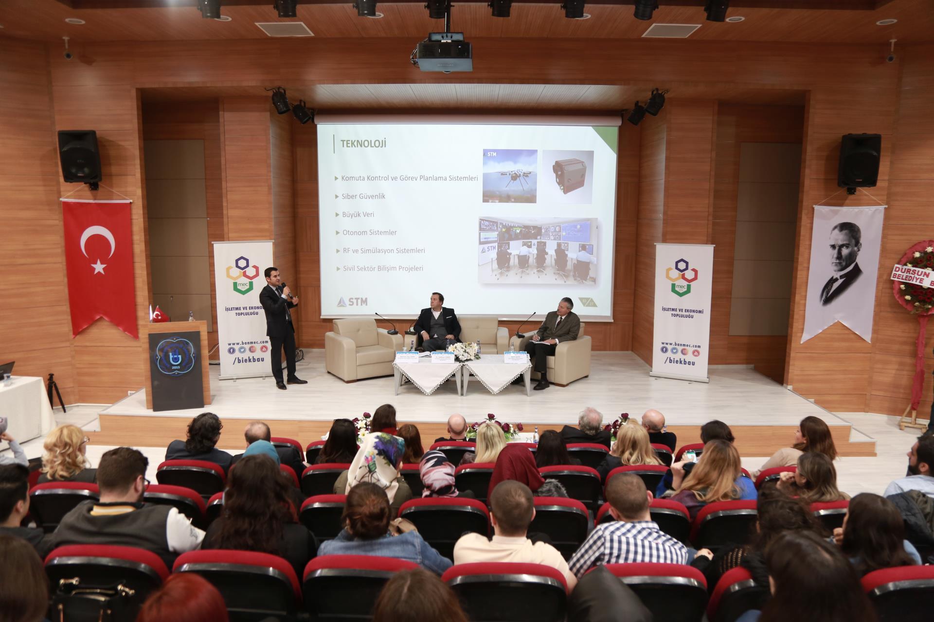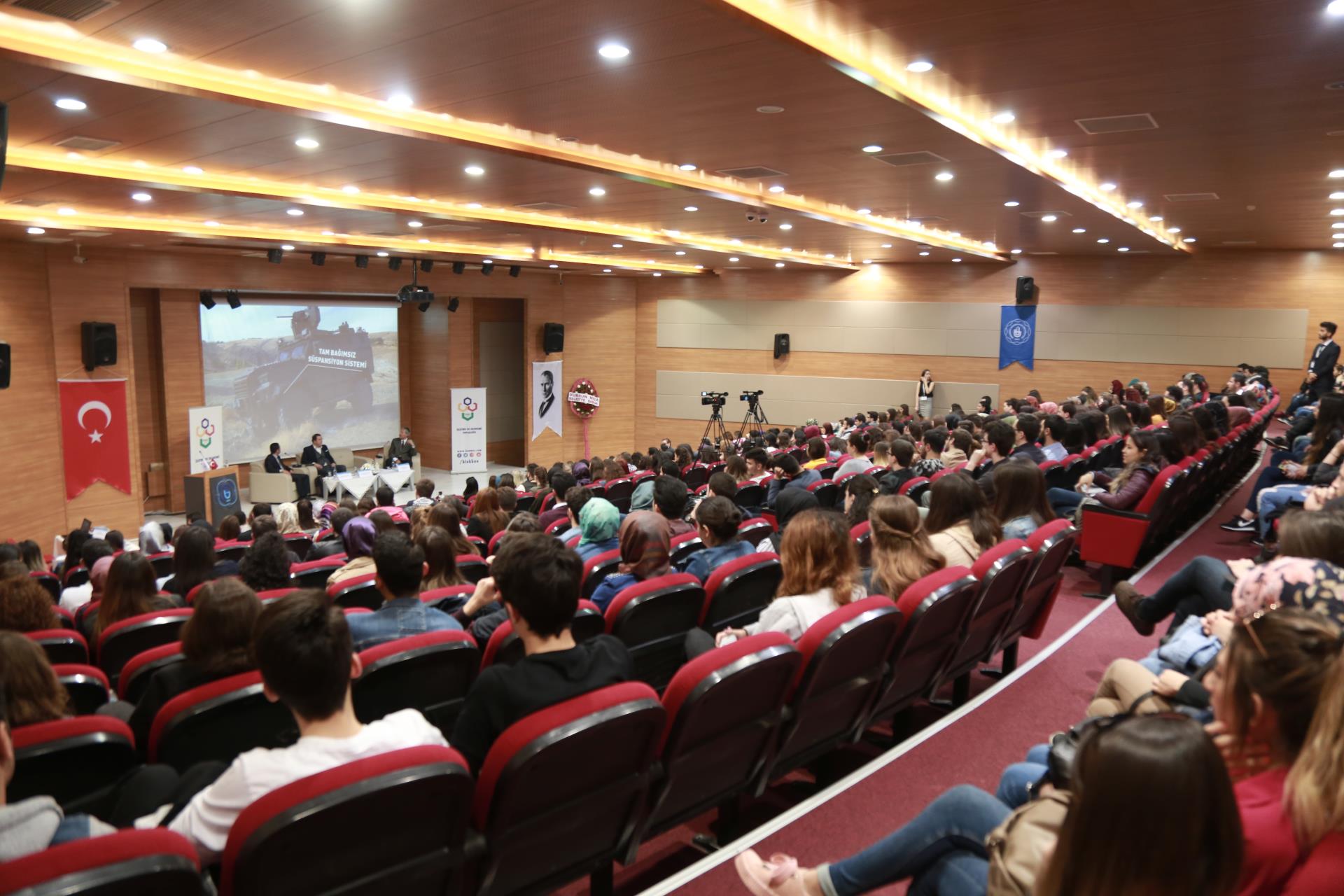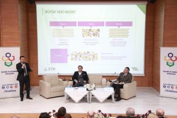 Mehmet Ulaş Çakır öğrencilerle bu tür etkinliklerde bir araya gelmekten duyduğu heyecanı dile getirerek konuşmasına başladı. Savunma Teknolojileri Mühendisliği’ni tanıtan sunumunda kuruluşundan, sermaye yapısından, kalite yönetim sistemlerinden, faaliyet alanlarından, büyük verinin özelliklerinden, veri bilimi mühendisliği ile büyük verinin faaliyet alanlarından bahsetti. Gelişen teknoloji ile endüstriyel ve sivil alanda siber güvenlikten bahsederek konuşmasını tamamladı.