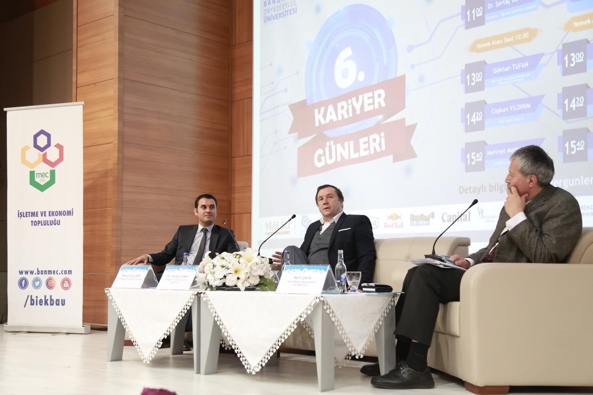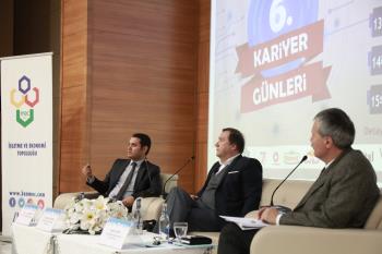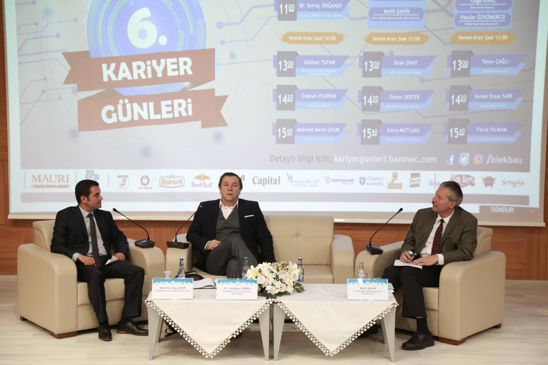 6. Kariyer Günleri etkinliği ikinci gününde Endüstri 4.0 Paneli ile başladı. Günün ilk oturumunda Ermaksan Yönetim Kurulu Başdanışmanı Dr. Halefşan Sümen moderatörlüğünde gerçekleşen panelin konuşmacıları STM Büyük Veri Projeleri Grup Lideri Mehmet Ulaş Çakır ve Nurol makina Operasyonlar Genel Müdür Yardımcısı Melih Şahin oldu.
