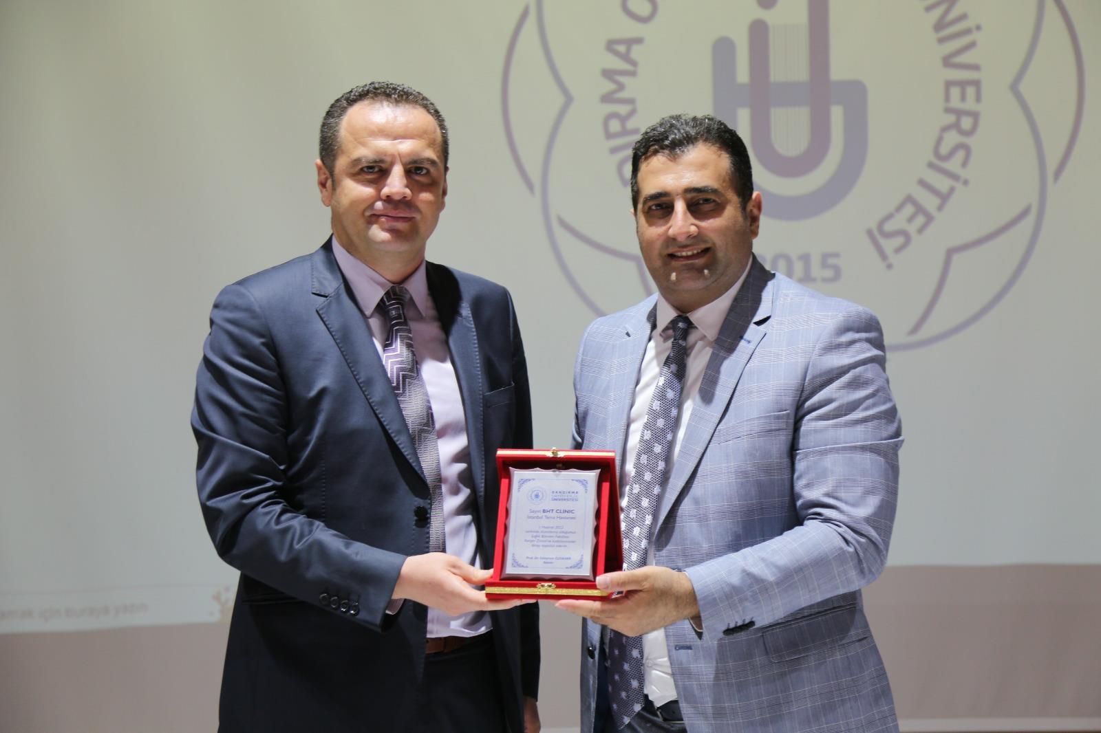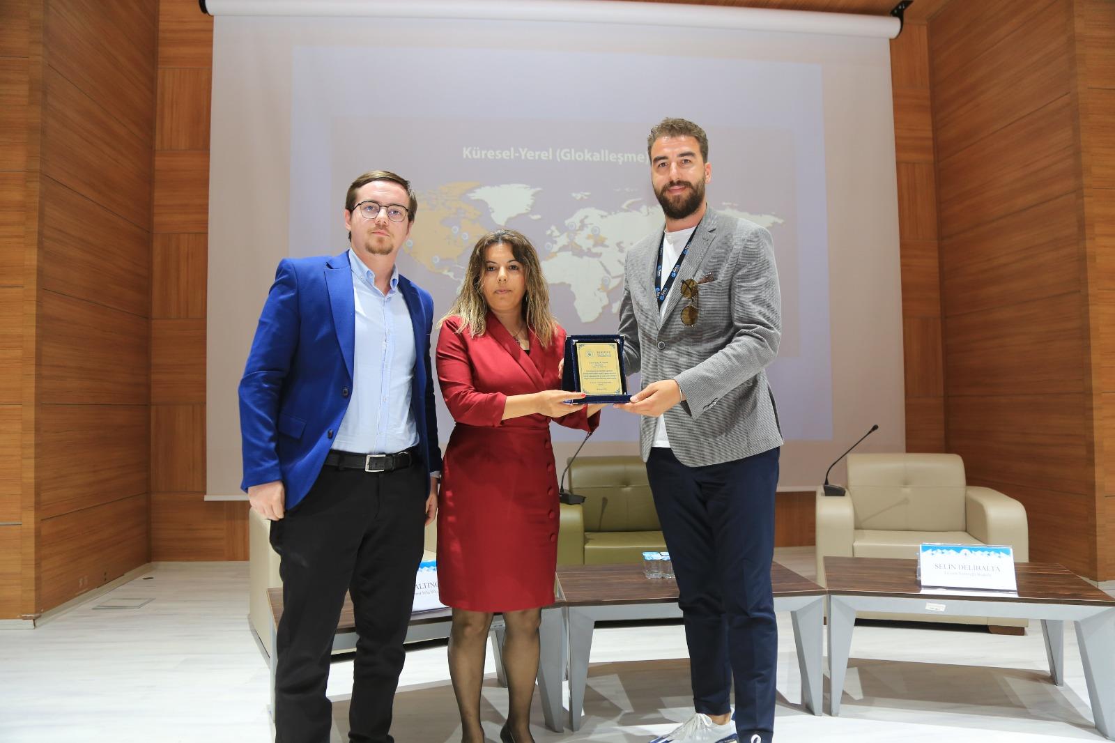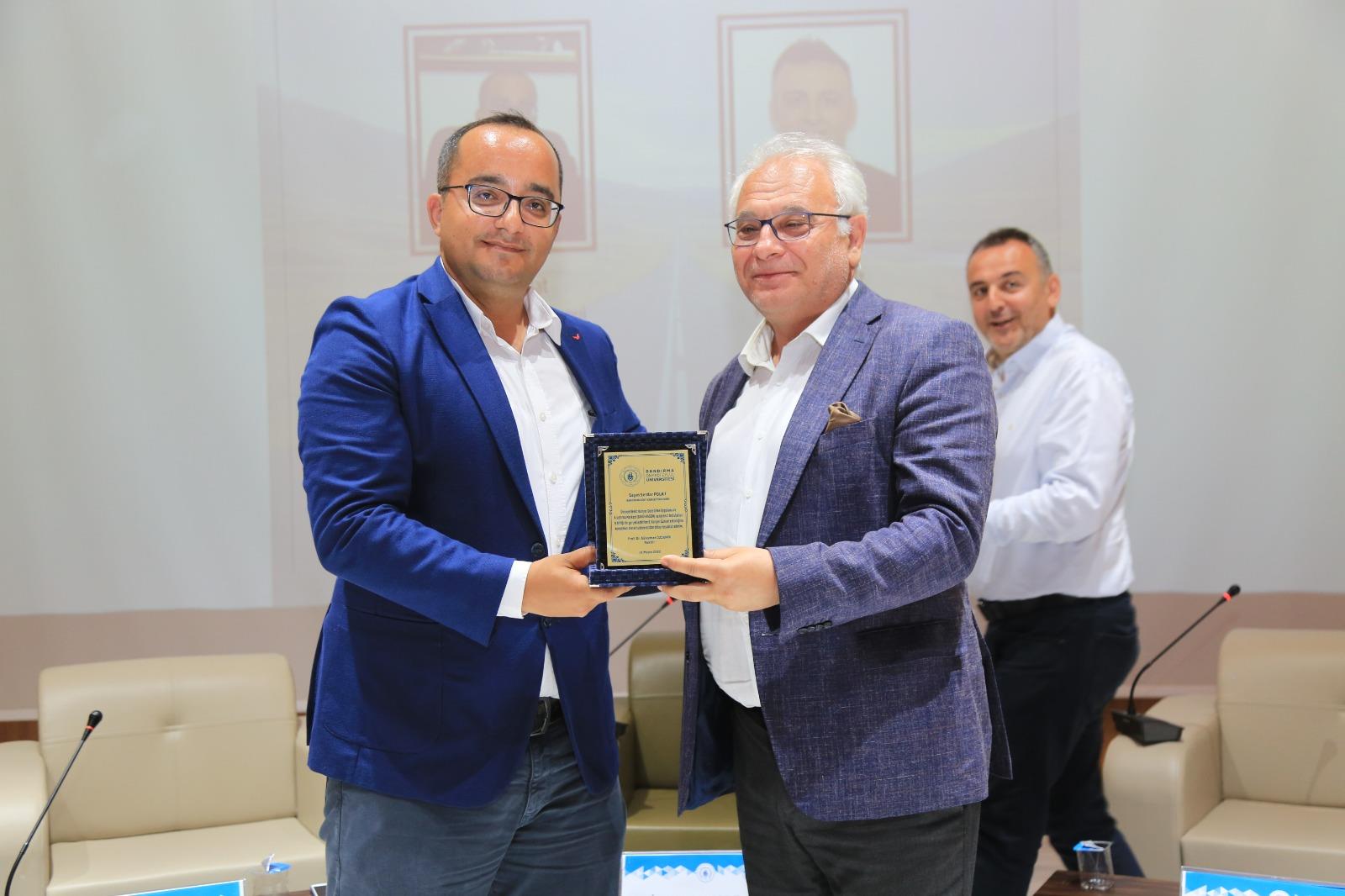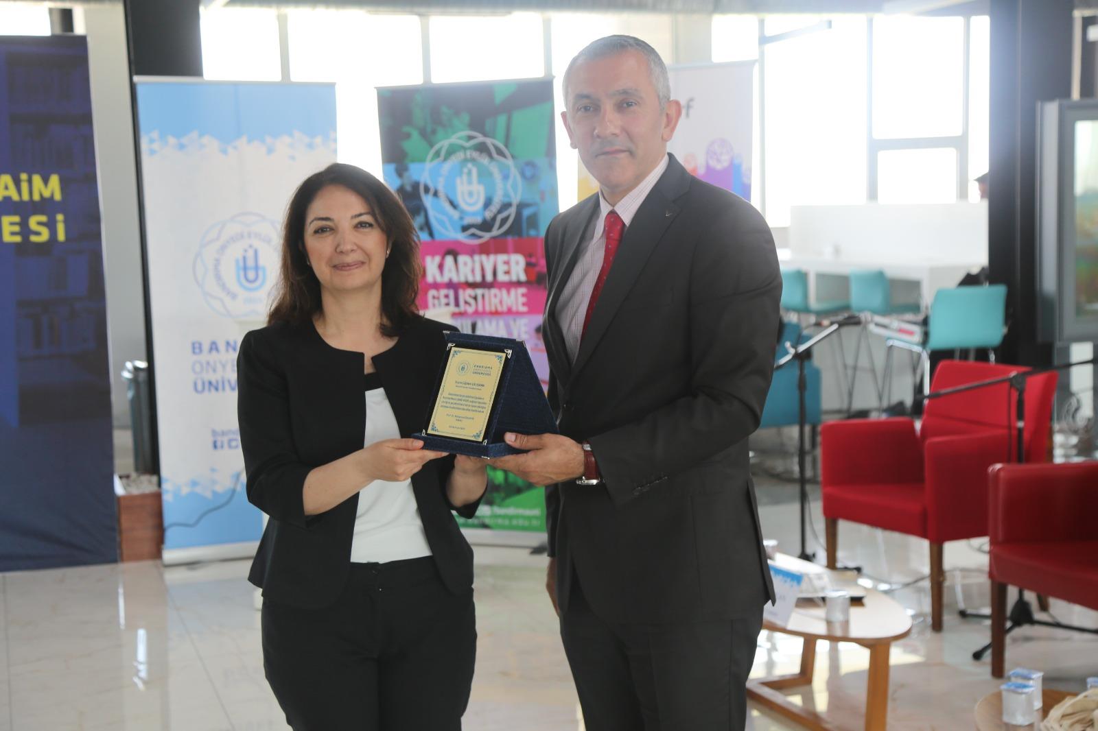 “8. Kariyer Günleri” etkinliğinin ilk gününün sabahki oturumları, gerçekleşen sunumların ardından, Rektör Yardımcılarımız Prof. Dr. Alpaslan Serel ve Kariyer Geliştirme Uygulama ve Araştırma Merkezi Müdürü Dr. Öğr. Üyesi Armağan Türk’ün katılımcı konuklara plaket takdimiyle sona erdi.