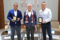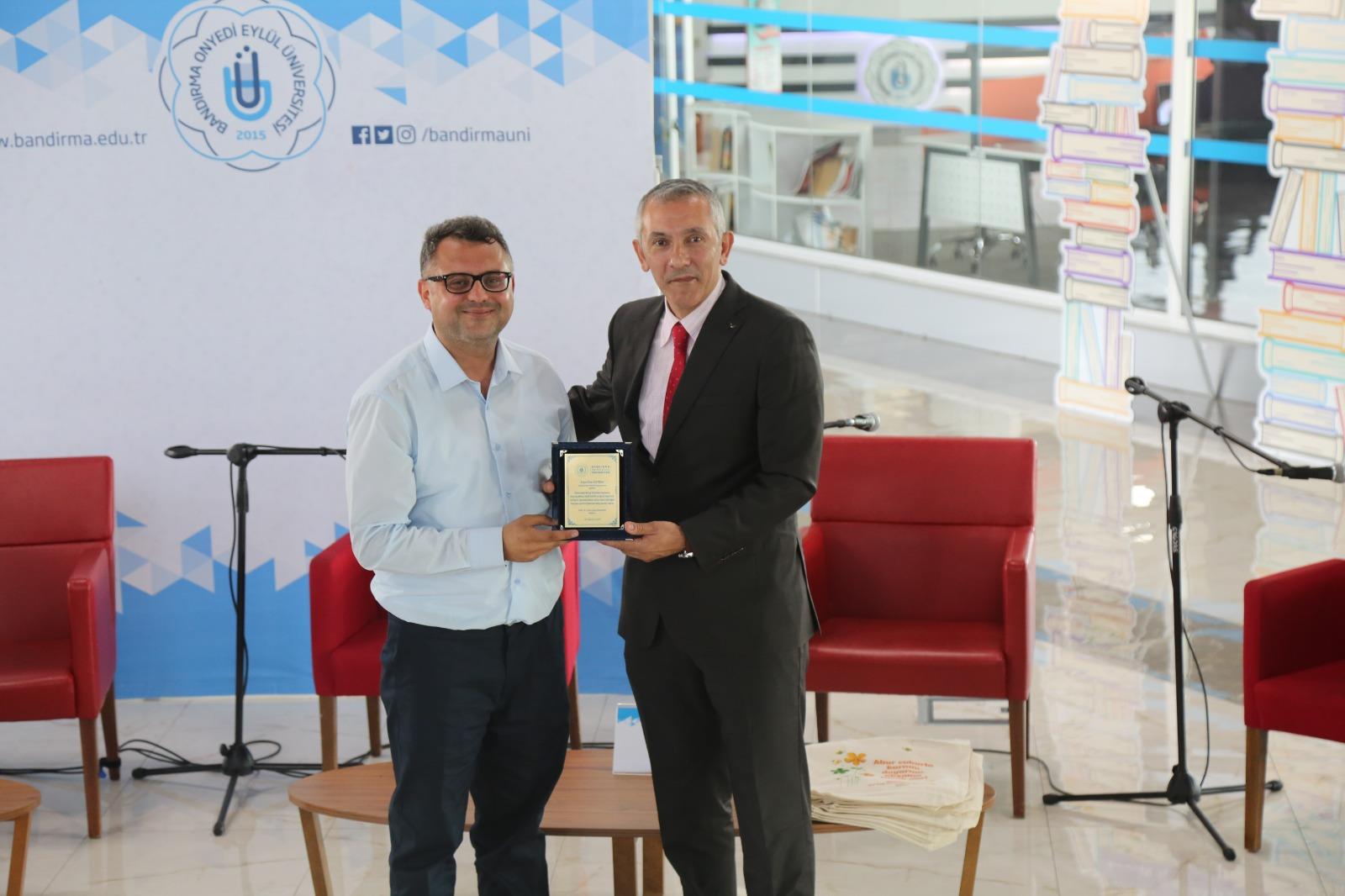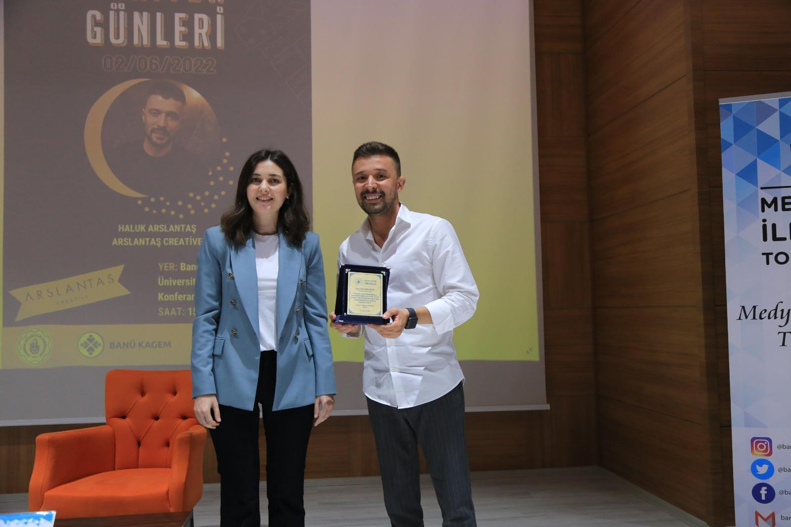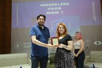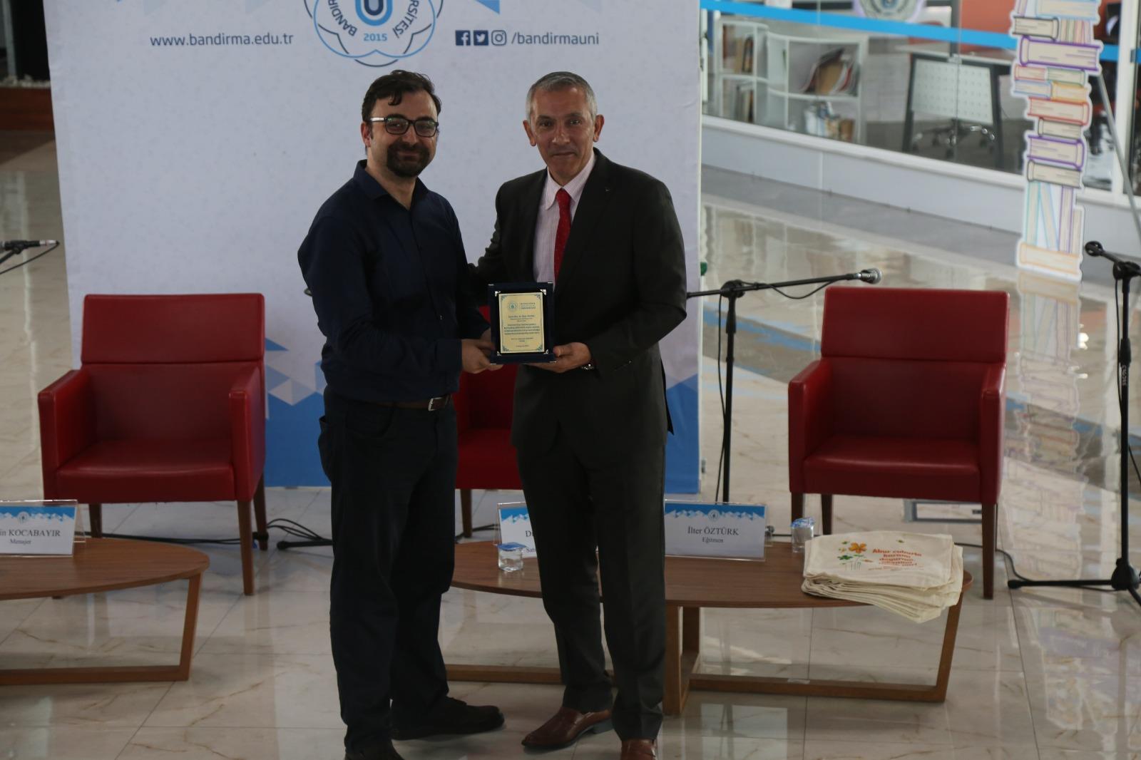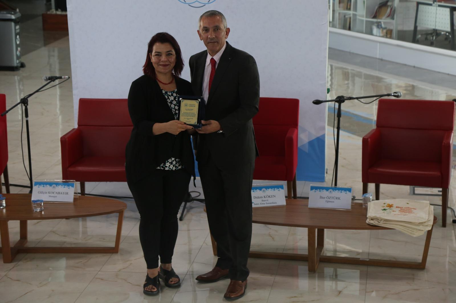 “8. Kariyer Günleri” etkinliğinin ilk gününün sabahki oturumları, gerçekleşen sunumların ardından, Rektör Yardımcılarımız Prof. Dr. Alpaslan Serel ve Kariyer Geliştirme Uygulama ve Araştırma Merkezi Müdürü Dr. Öğr. Üyesi Armağan Türk’ün katılımcı konuklara plaket takdimiyle sona erdi.