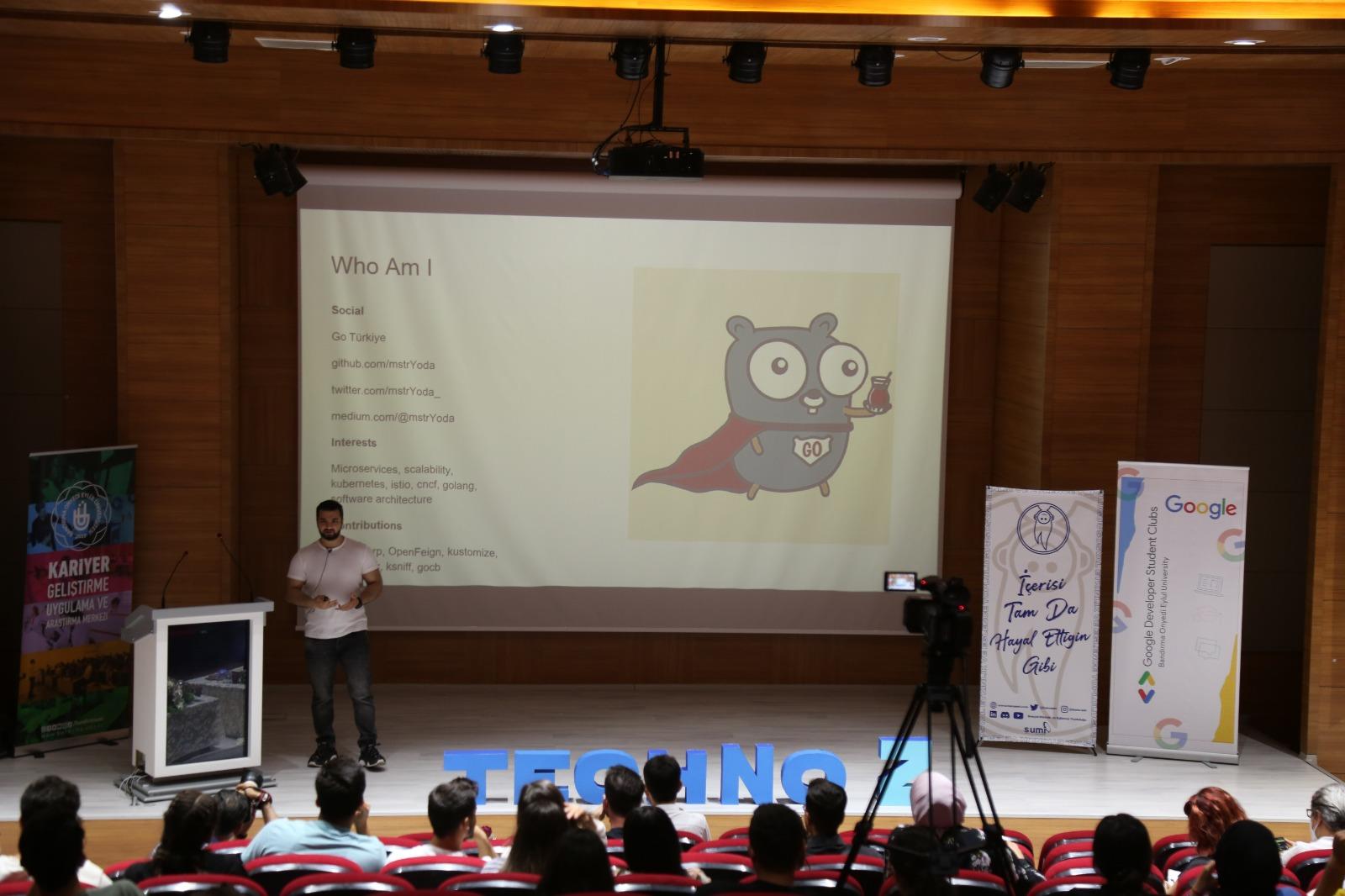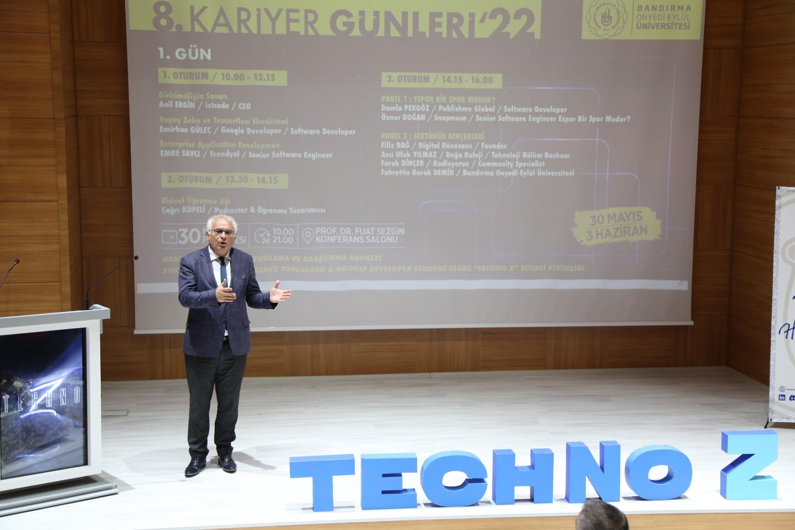 Gerçekleşen açılış programı sonrası “8. Kariyer Günleri”nin 1. Gün oturumları Sosyal Etkinlik ve Eğlence Topluluğu ile Google Developer Student Club Topluluğunun etkinlikleri ile devam etti. Istcode CEO’su Anıl Ergin, “Girişimciliğin Sanatı” başlığıyla katılımcılara girişimciliğe yönelik izlediği yol haritasını aktararak kariyer planlamasında başka bir yolun mümkün olabildiği vurguladı. Değişen dünya ve bu bağlamda teknolojik gelişmelere vurgu yapan Google Devoloper Yazılım Geliştirme Uzmanı Emirhan Güleç ise “Yapay Zeka ve Tenserlow Ekosistemi” konu başlığı ile teknolojik gelişmeler ışığında kariyer planlamasının nasıl olabileceğini aktardı. Kıdemli Yazılım Mühendisi Emre Avcı ise kurumsal şirketlerdeki teknolojik yazılımı konusunda sunumlar gerçekleştirerek bu alanda kariyer planlaması yapmak isteyen katılımcılara çeşitli aktarımlarda bulundu. Öğrenme Tasarımcısı Çağın Küpeli’nin “Kişisel Öğrenme Ağı” başlıklı sunumunda ise kişilerin kariyer hedeflerinde başarılı olmanın önemli kaidelerinden birinin kişisel ağlarının gelişiminde geçtiğini ve söz konusu ağın nasıl oluşturulması gerektiğine yönelik önemli aktarımlarda bulundu.