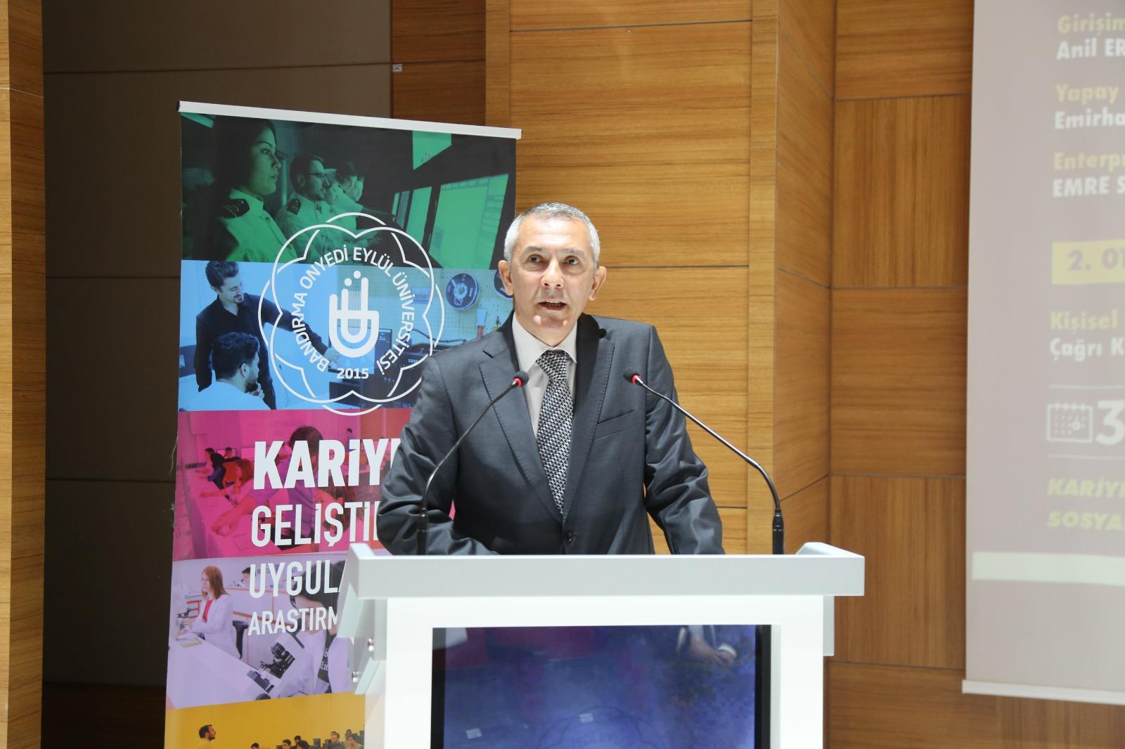 “8. Kariyer Günleri” etkinliğinin açış konuşmasını gerçekleştiren Üniversitemiz Kariyer Geliştirme Uygulama ve Araştırma Merkezi (BANÜ-KAGEM) Müdürü Dr. Öğr. Üyesi Armağan Türk, “BANÜ-KAGEM olarak ‘8. Kariyer Günleri’ etkinliğimizi önceki dönemlerde olduğu üzere 5 güne yaymayı planladık. Her fakülteyi temsil eden öğrenci topluluklarına ayrı bir gün ayrılmış bulunmaktadır. Bu program için öğrenci topluluklarımızla uzun bir çalışma sürecimiz oldu. Ümit ederim ki öğrencilerimiz buraya gelen firmalarla görüşerek önemli fırsatlar ve iş imkanları elde ederler. Faydalı bir etkinlik olmasını diliyorum. Emeği geçen herkese teşekkür ediyorum.“ diye konuştu.