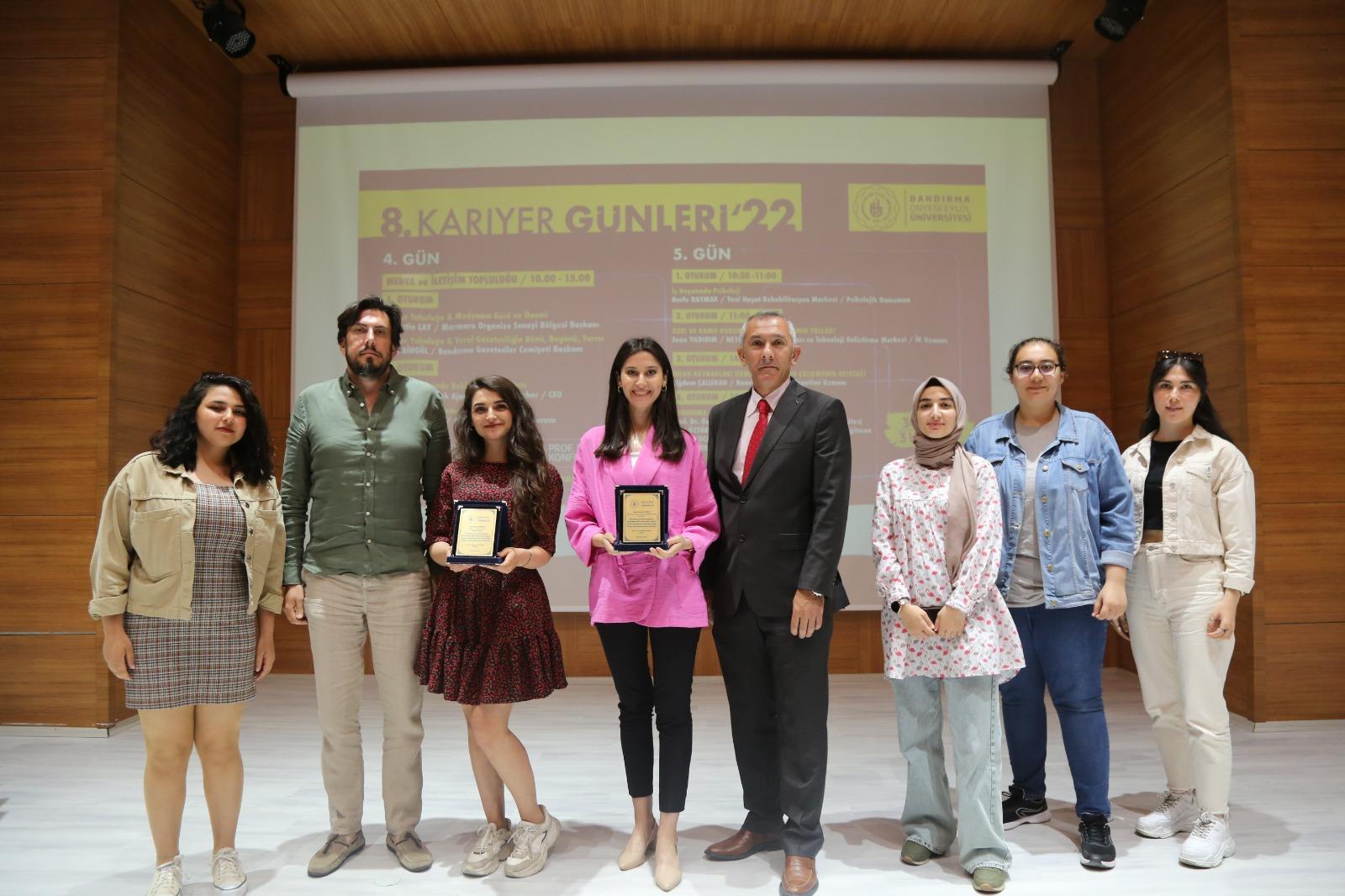 8. Kariyer Günleri etkinliğinin kapanış oturumu ise Bandırma Onyedi Eylül Üniversitesi’nde daha önce gerçekleştirilen Kariyer Günleri’ne iştirak eden ve ilgili programlardan istifade ederek kariyer yolcuklarında başarılı olan Bandırma Onyedi Eylül Üniversitesi Mezunlarının konuk olduğu mezunlar oturumu gerçekleştirildi. Mezunlar oturumunda mezun öğrencilerimiz deneyim aktarımında bulunu. Ayrıca mezun öğrenci ilişkilerinin gelişimi çerçevesinde bir takım program ve projeler için çeşitli adımlar atıldı.
