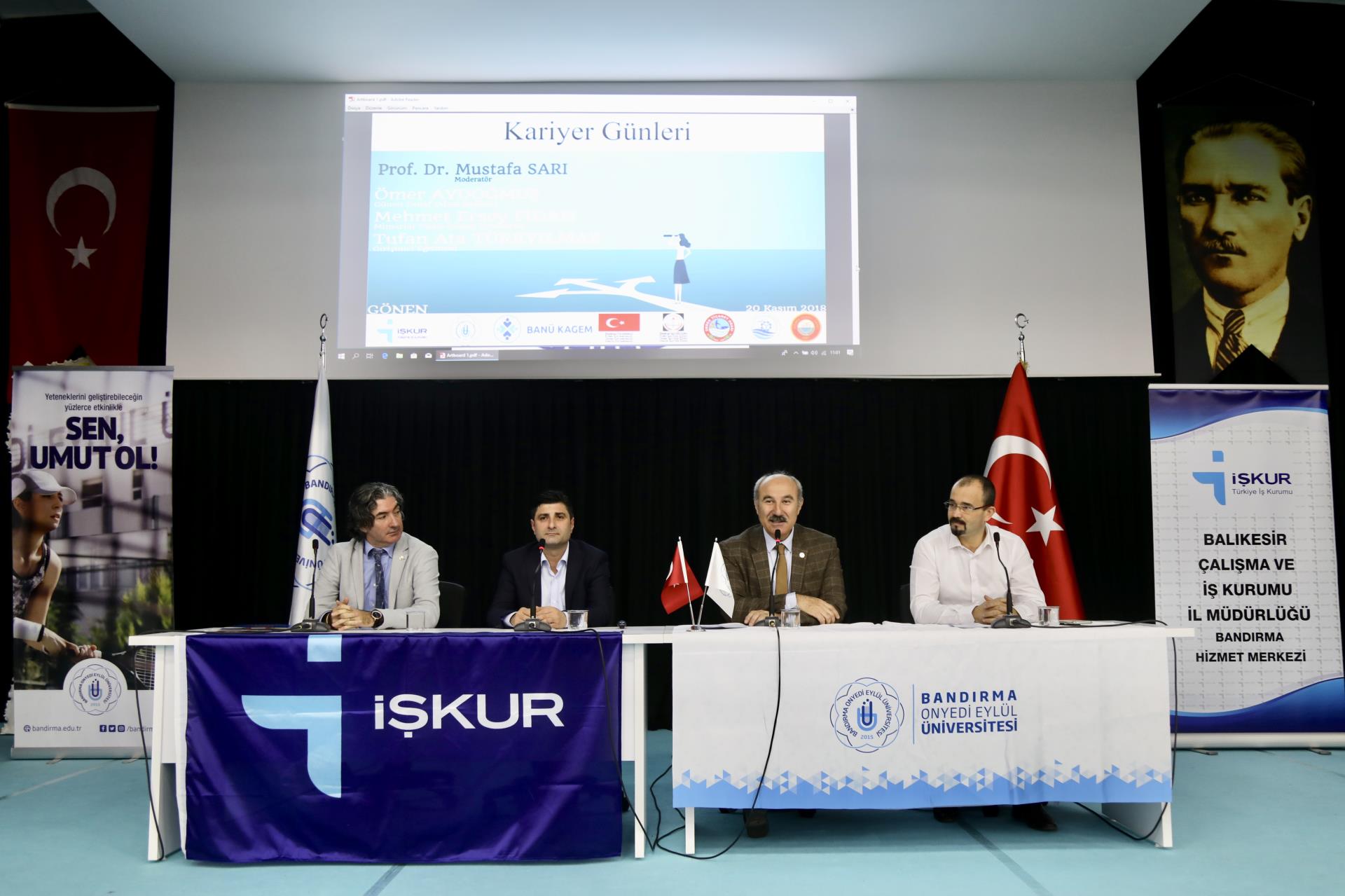 Üniversitemiz Kariyer Geliştirme Uygulama ve Araştırma Merkezi (KAGEM) ile Bandırma Çalışma ve İş Kurumu arasındaki iş birliği kapsamında, 20-23 Kasım tarihleri arasında üniversitemiz meslek yüksekokulu öğrencilerine yönelik olarak “Kariyer Festivali” düzenlendi.