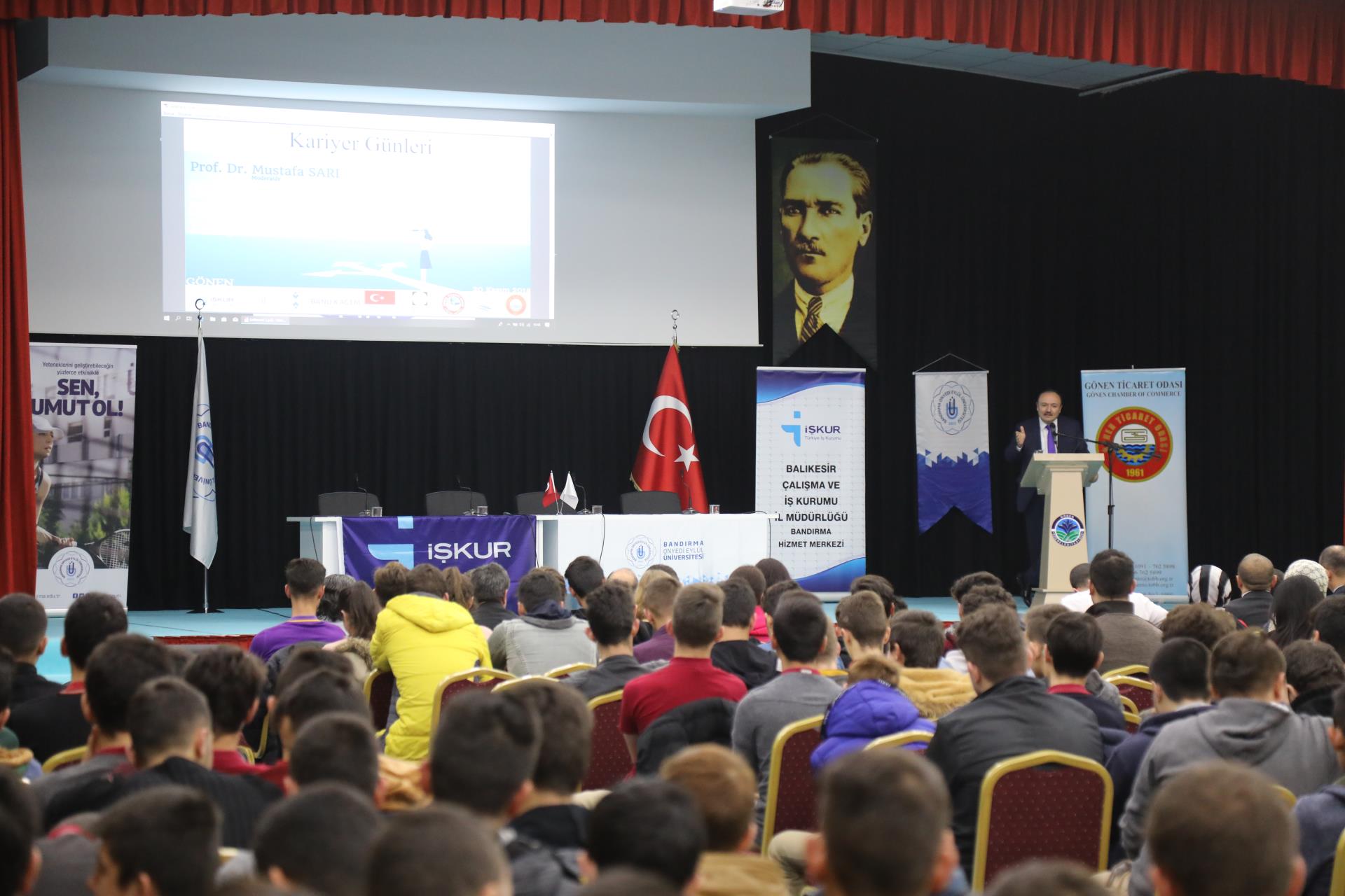 Türkiye’de meslek yüksekokullarına yönelik olarak düzenlenen ilk kariyer festivali olma niteliği taşıyan, 20-23 Kasım tarihleri arasında Gönen, Manyas, Erdek ve Bandırma ilçelerimizde üniversitemiz Kariyer Geliştirme Uygulama ve Araştırma Merkezi (KAGEM) ile Bandırma Çalışma ve İş Kurumu arasındaki iş birliğinde düzenlenen “Kariyer Festivali” etkinliği, üniversitemiz meslek yüksekokulu öğrencileri ve meslek lisesi öğrencileri tarafından yoğun ilgi gördü.