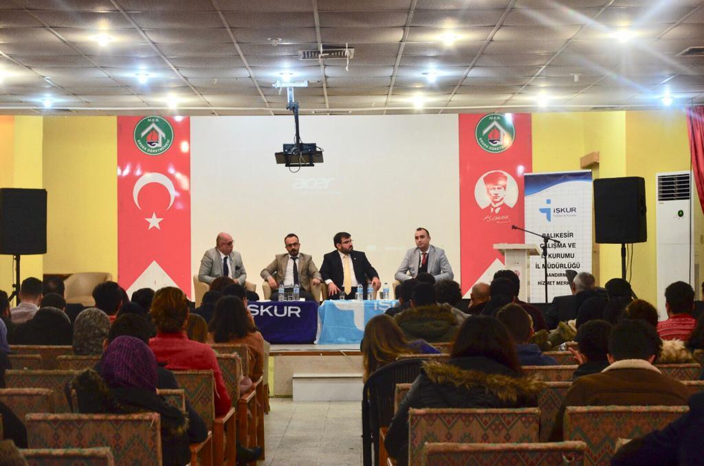 21 Kasım tarihinde Manyas Meslek Yüksekokulumuz’da gerçekleşen etkinliğin öğleden önceki oturumunda panelin moderatörü üniversitemiz İktisadi ve İdari Bilimler Fakültesi Öğretim Üyesi Doç. Dr. Metehan Yılgör olurken, panelin konuşmacıları ise Manyas Kaymakamı Muhammed Kaya, Manyas Belediye Başkanı Tancan Barçın, Bupiliç İnsan Kaynakları ve İdari İşler Müdürü Sadettin Kutlu, Adin Otomotiv İnsan Kaynakları Yöneticisi Dilek Polatgil ve İş Güvenliği Uzmanı Burhan Erdim oldu. Öğleden sonra gerçekleşen oturumda ise panelin moderatörü yine üniversitemiz İktisadi ve İdari Bilimler Fakültesi Öğretim Üyesi Doç. Dr. Metehan Yılgör olurken panelin konuşmacıları ise Gönenli Süt ve Süt Ürünleri İnsan Kaynakları ve İdari İşler Müdürü Osman Gündoğan, Hamsi Finger Kurucusu Gürkan Gediz ve Özel Bandırma Royal Hastanesi Müdürü İsmet Karakaya oldu.