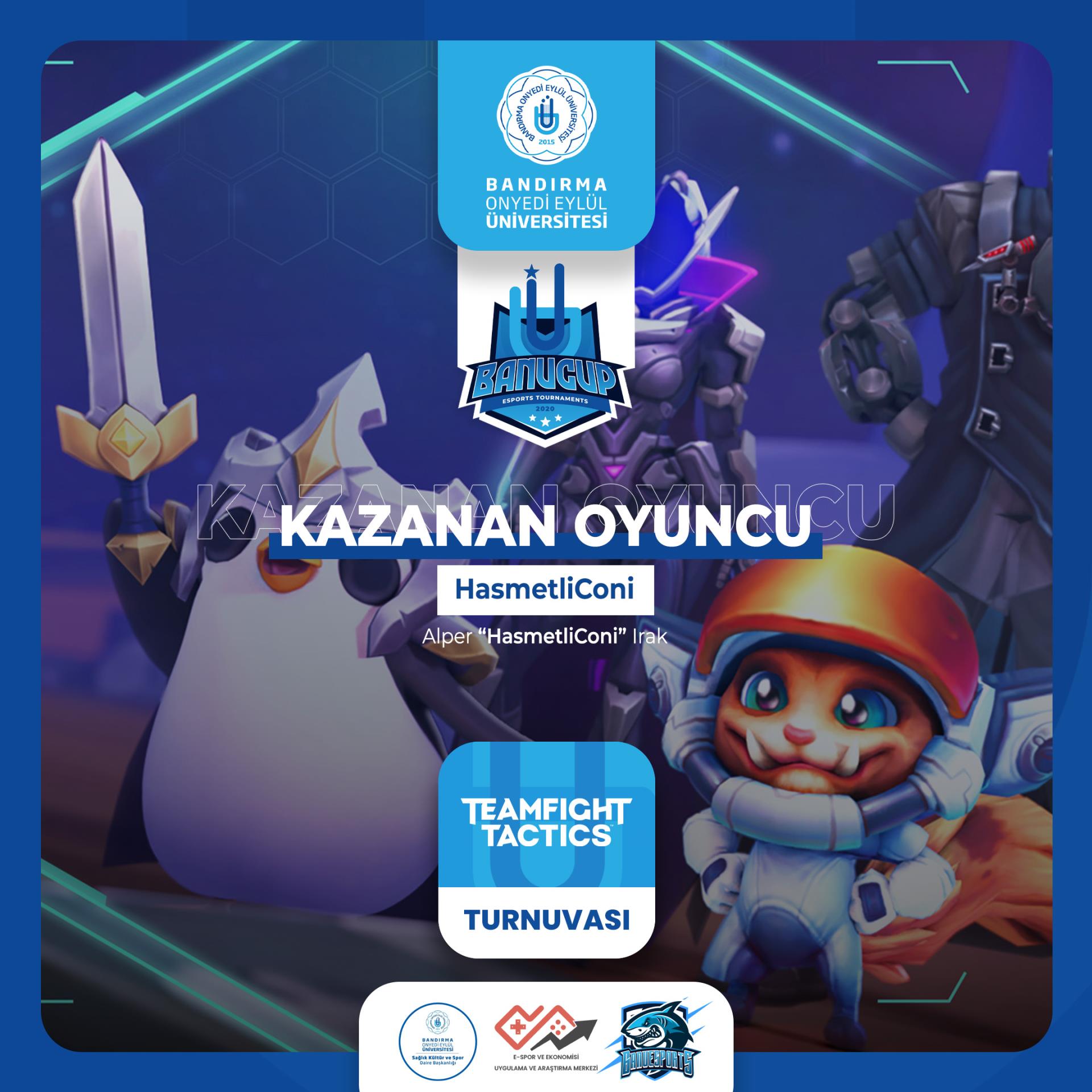 Üniversitemiz, Sağlık Kültür ve Spor Daire Başkanlığı ve Espor ve Ekonomisi Uygulama ve Araştırma Merkezi işbirliği ile yürütülen ödüllü BANUCUP 2020, 300'e yakın öğrencinin katılımıyla başarıyla tamamlandı.