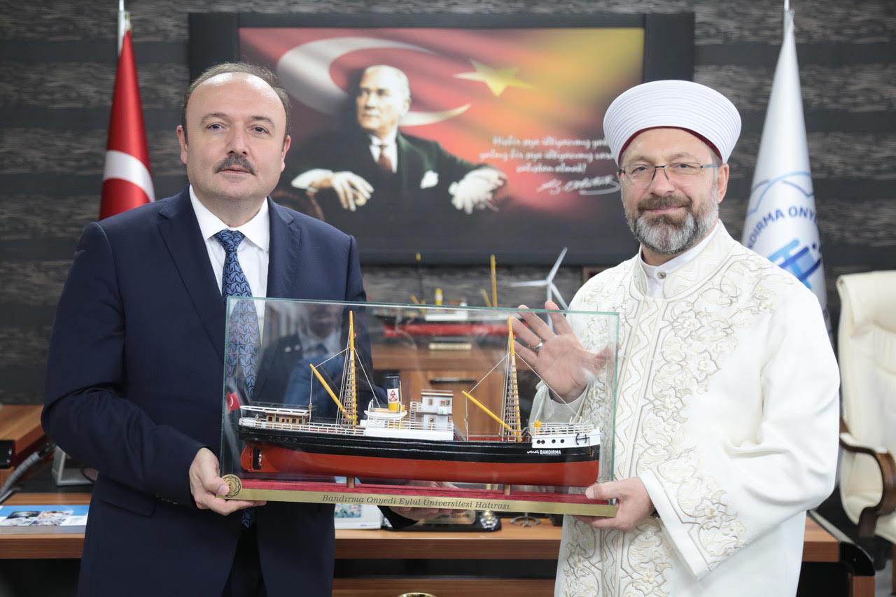 Diyanet İşleri Başkanımız Prof. Dr. Ali Erbaş ayrıca, Sakarya Üniverstesi'nde Rektörümüz Prof. Dr. Süleyman Özdemir ile birlikte çalıştıklarını, çalışkanlığına yakinen şahit olduğunu ve önümüzdeki yıllarda Bandırma Onyedi Eylül Üniversitesi’nde başarılı çalışmalarının artarak devam edeceğine olan inancını dile getirerek konuşmasını sonlandırdı.