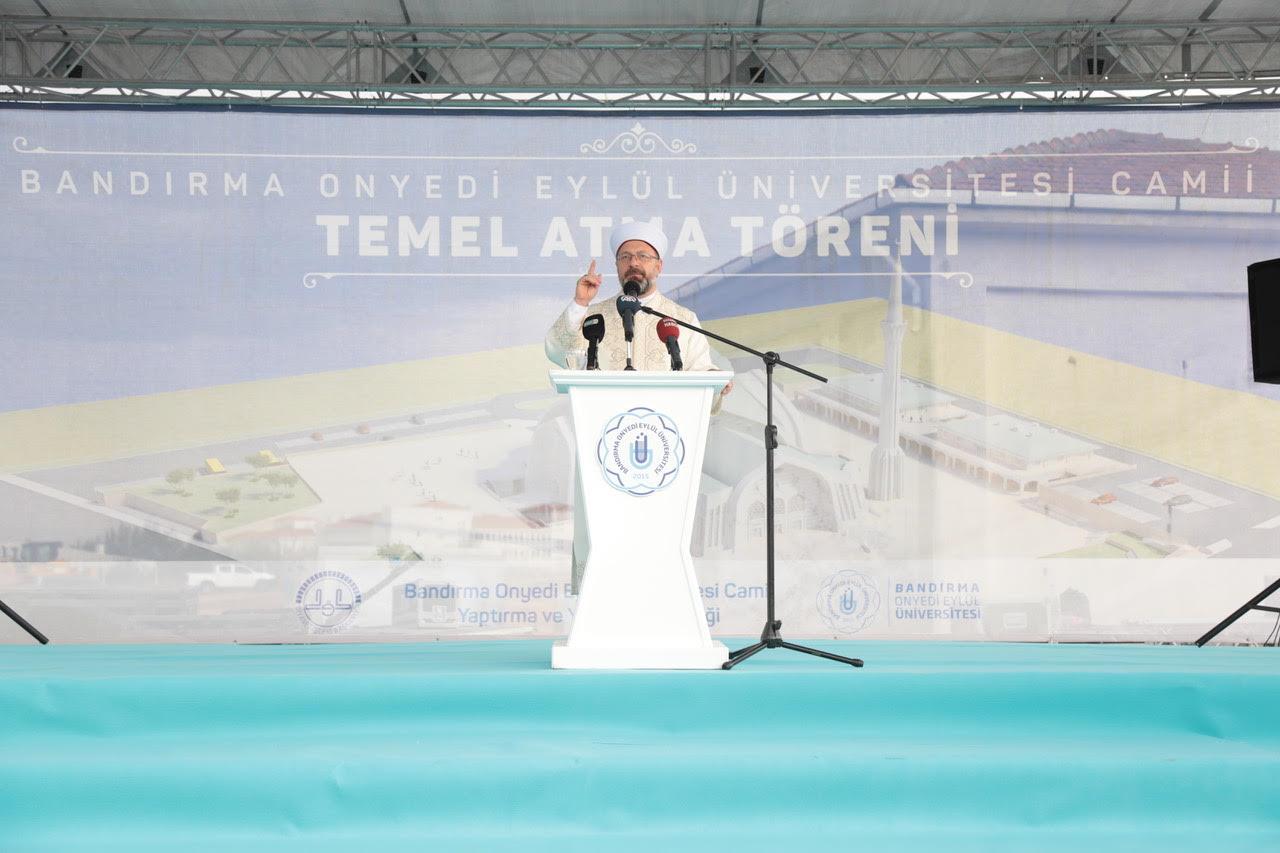 Temel Atma Töreni’nin onur konuğu olan Diyanet İşleri Başkanımız Prof. Dr. Ali Erbaş ise konuşmasına, kendisinden önce söz alan başta Rektörümüz Prof. Dr. Süleyman Özdemir olmak üzere Bandırma Belediye Başkanı ve Balıkesir Büyükşehir Belediye Başkanı’na bu projeye vermiş oldukları destek ve konuşmalarındaki samimiyet ve heyecandan dolayı teşekkür ederek başladı.
